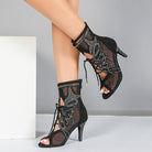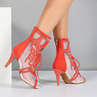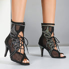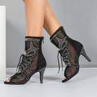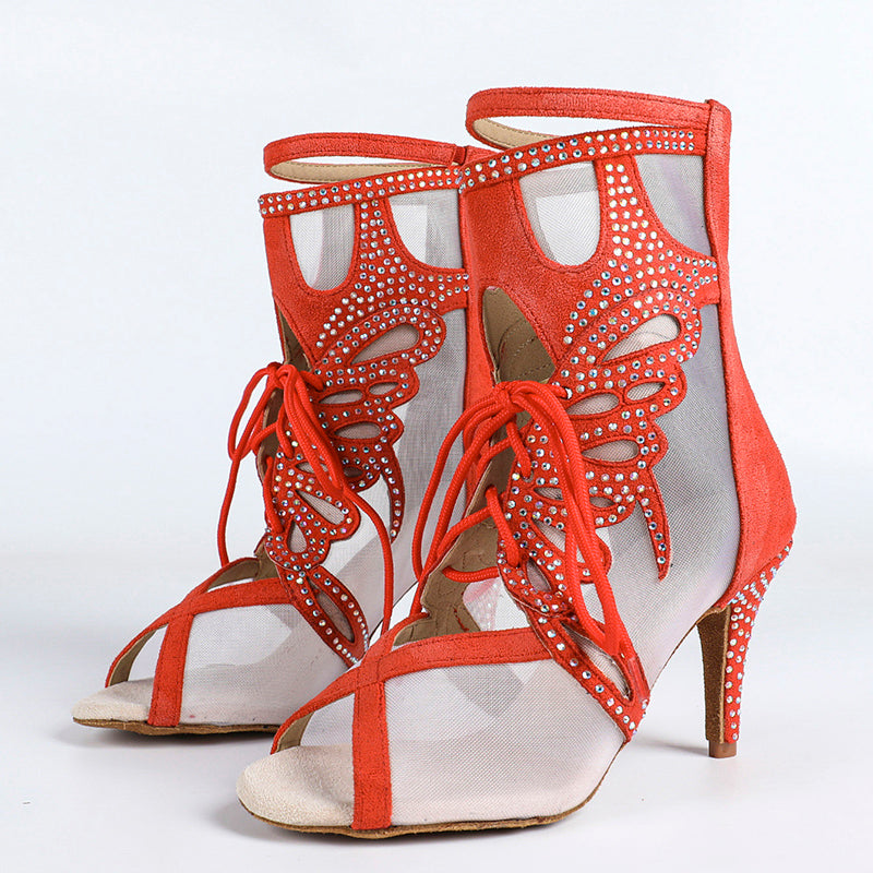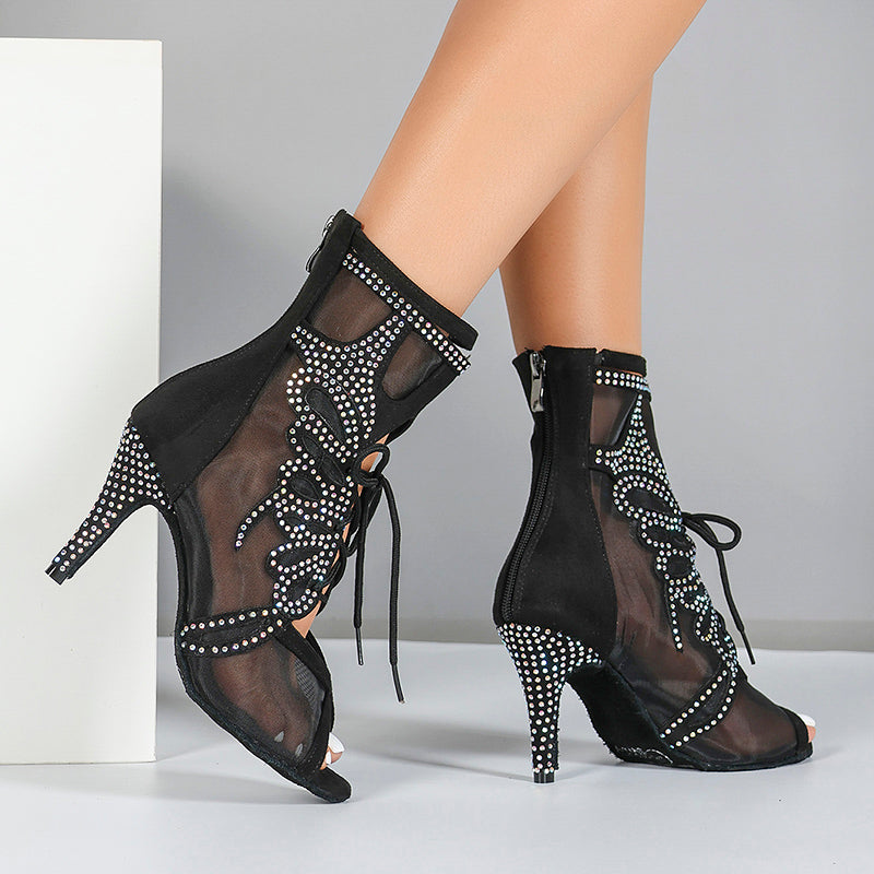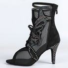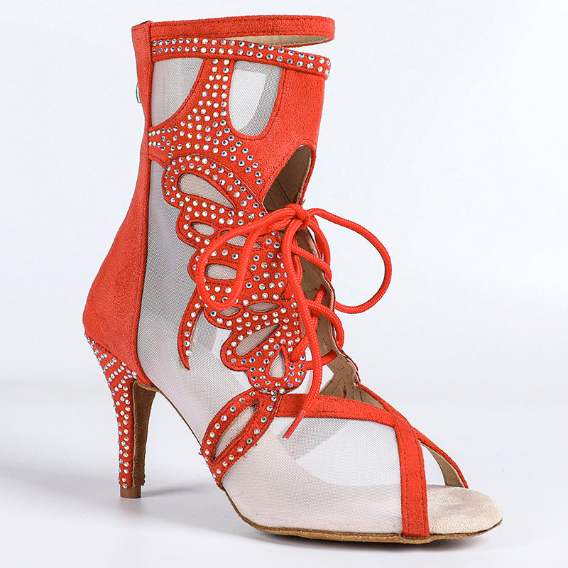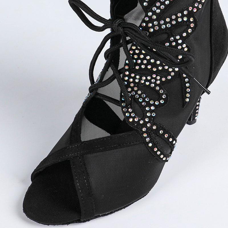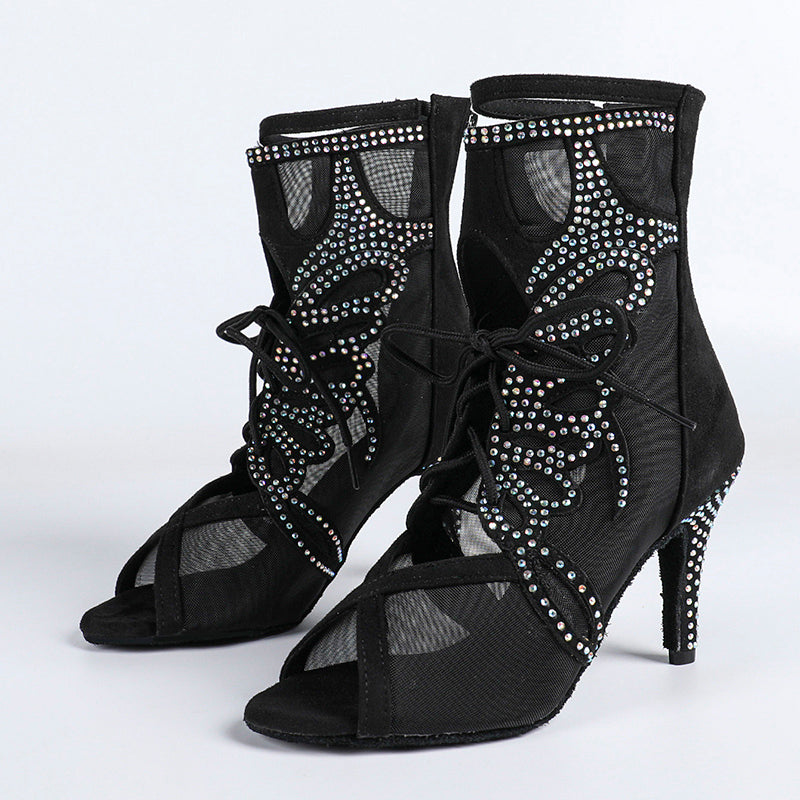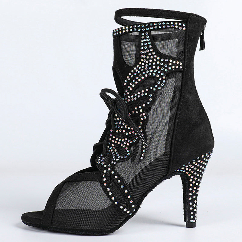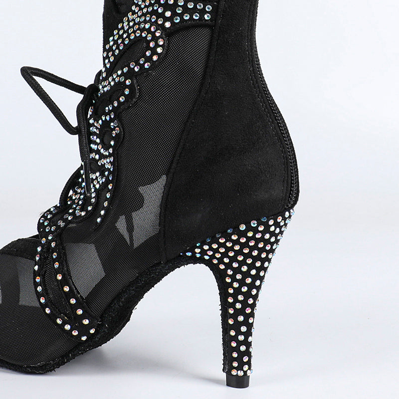 DS Damen Satin Mesh Tanzstiefel mit Absatz, individuell anpassbar, Salsa Jazz Tanzschuhe