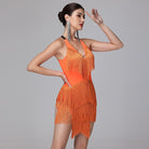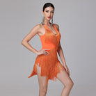 Anpassbares Damen-Performance-Kleid mit ärmellosen Quasten, lateinamerikanisches Salsa-Tanzkleid, Wettkampfkleid