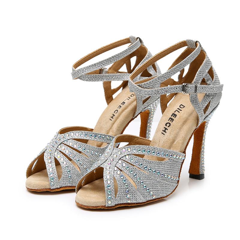 Damen Ballsaal Tanzschuhe Latein Schuhe mit Glitzersteinen und individuellem Absatz