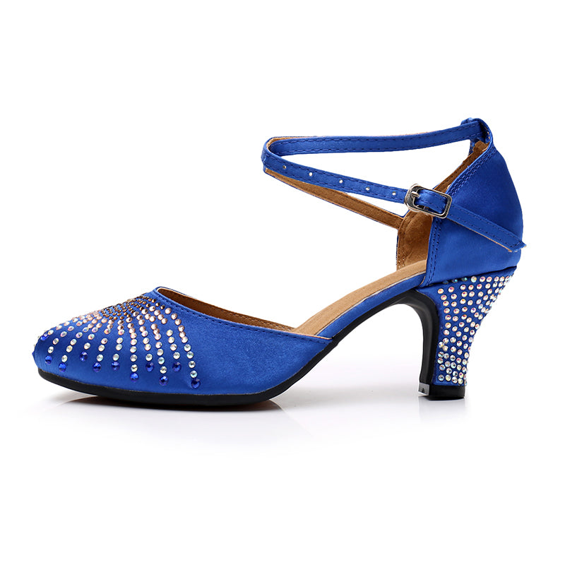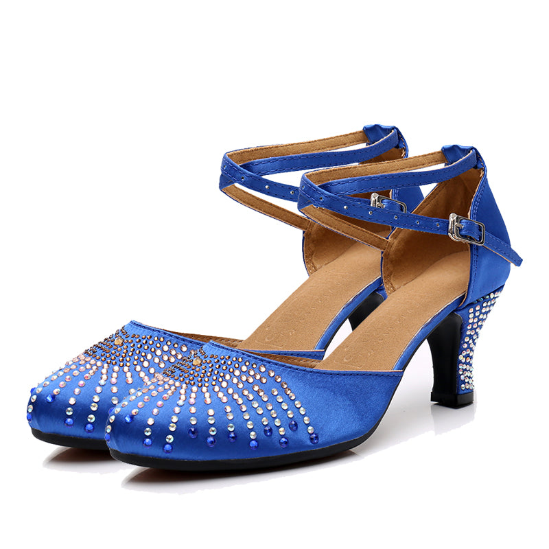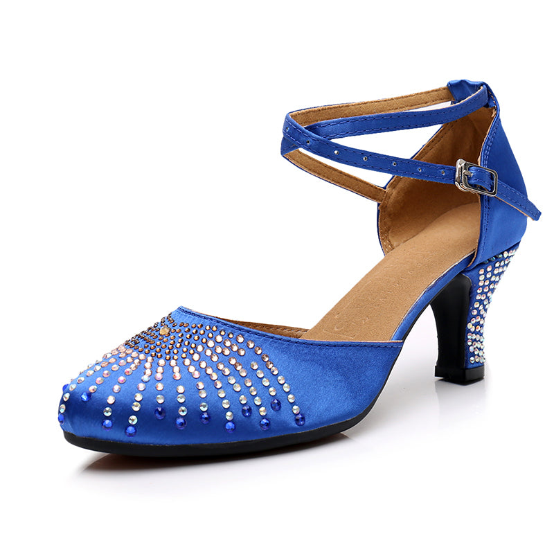 Damen Blau Satin Maßgeschneiderte Ferse Gesellschaftstanzschuhe Moderne Tanzschuhe