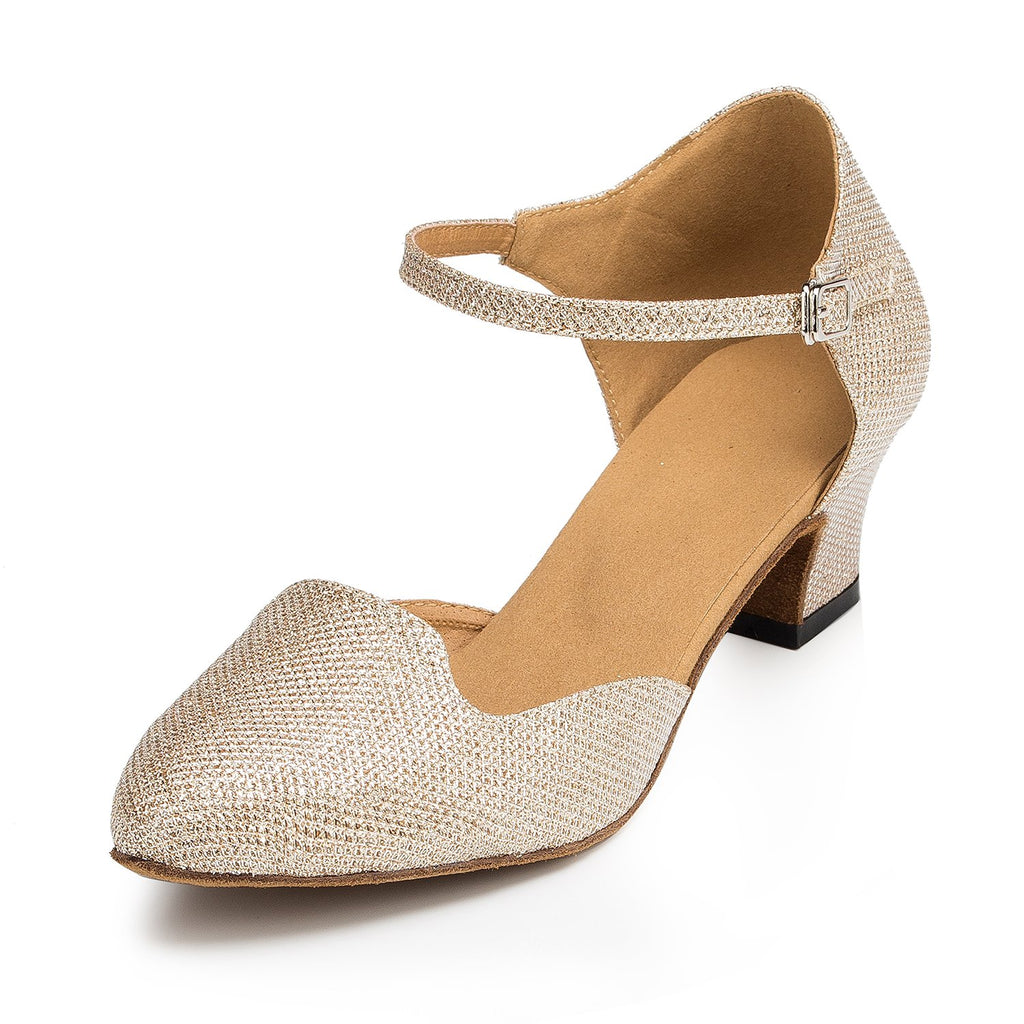Damen Gold Echtleder Maßgefertigter Absatz Moderne Tanzschuhe Gesellschaftstanzschuhe
