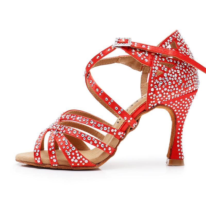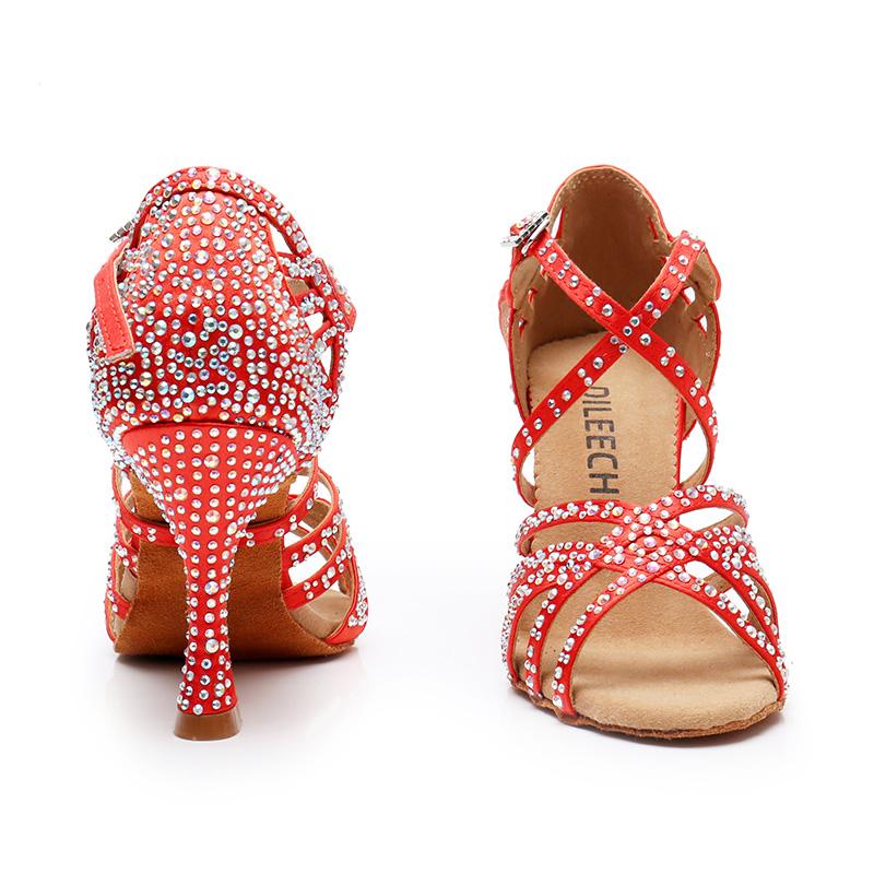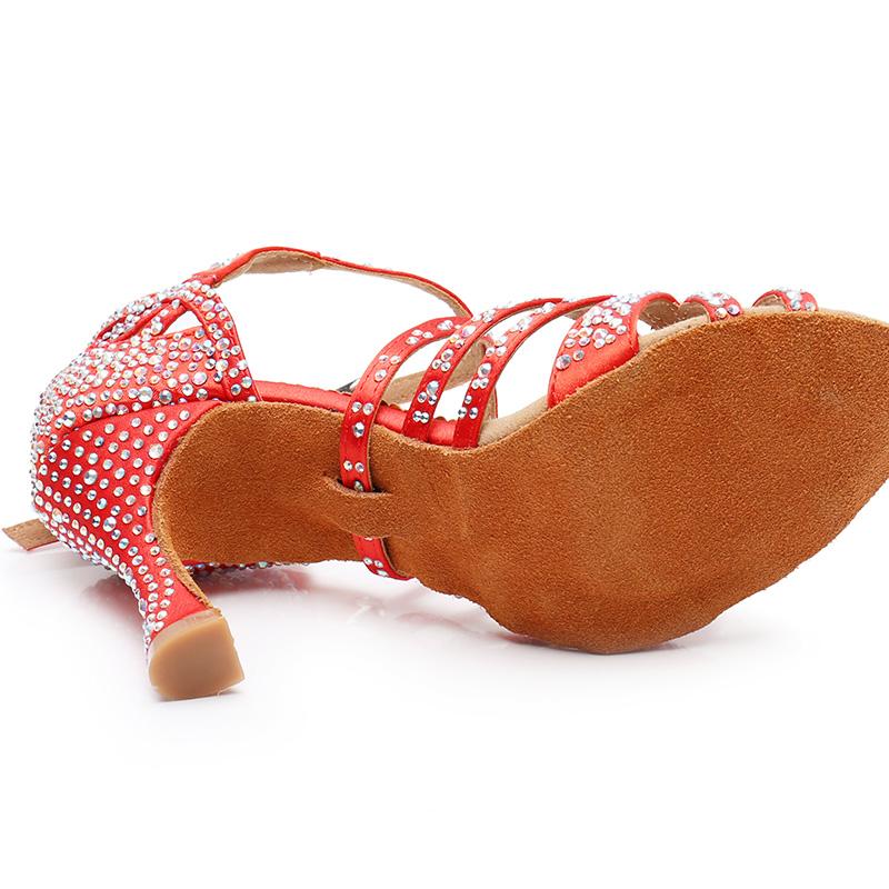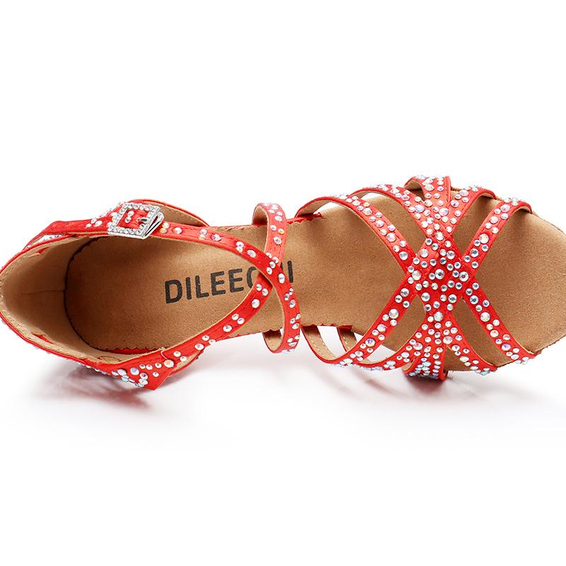 Rote Tanzschuhe mit Riemchen und Kristallen für Damen