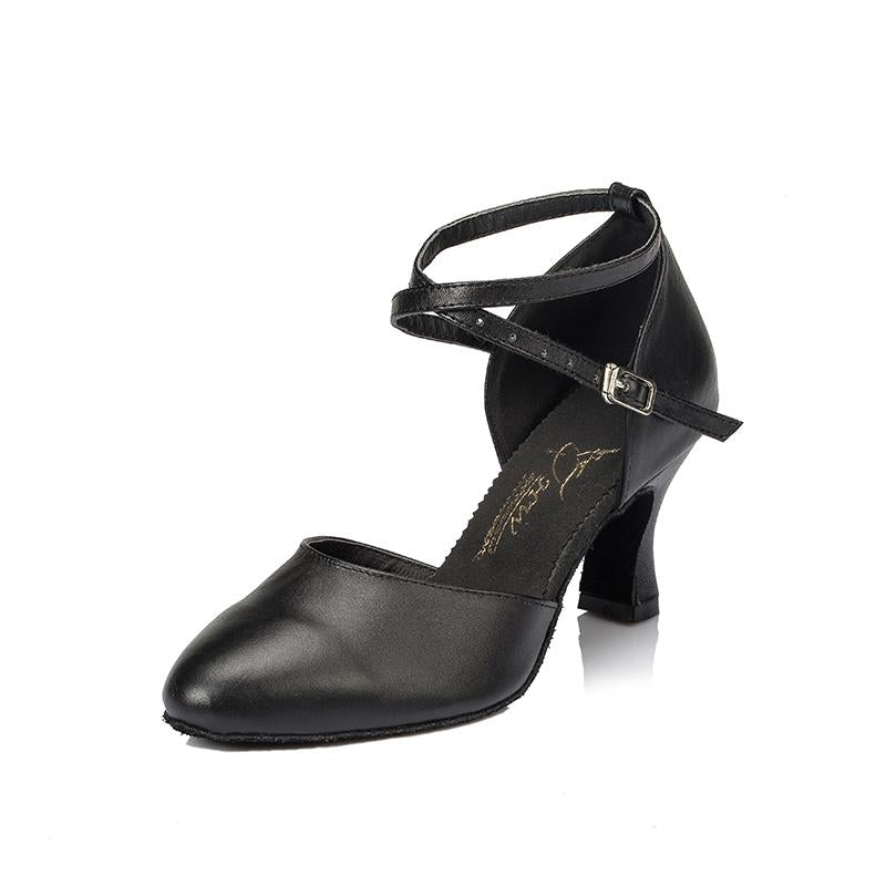 Damen Schwarz Echtleder 7cm Absätze Modern Mit Schnalle Gesellschaftstanzschuhe Moderne Tanzschuhe