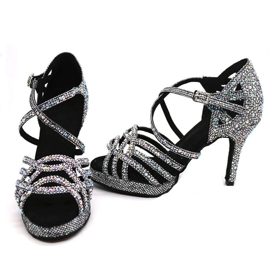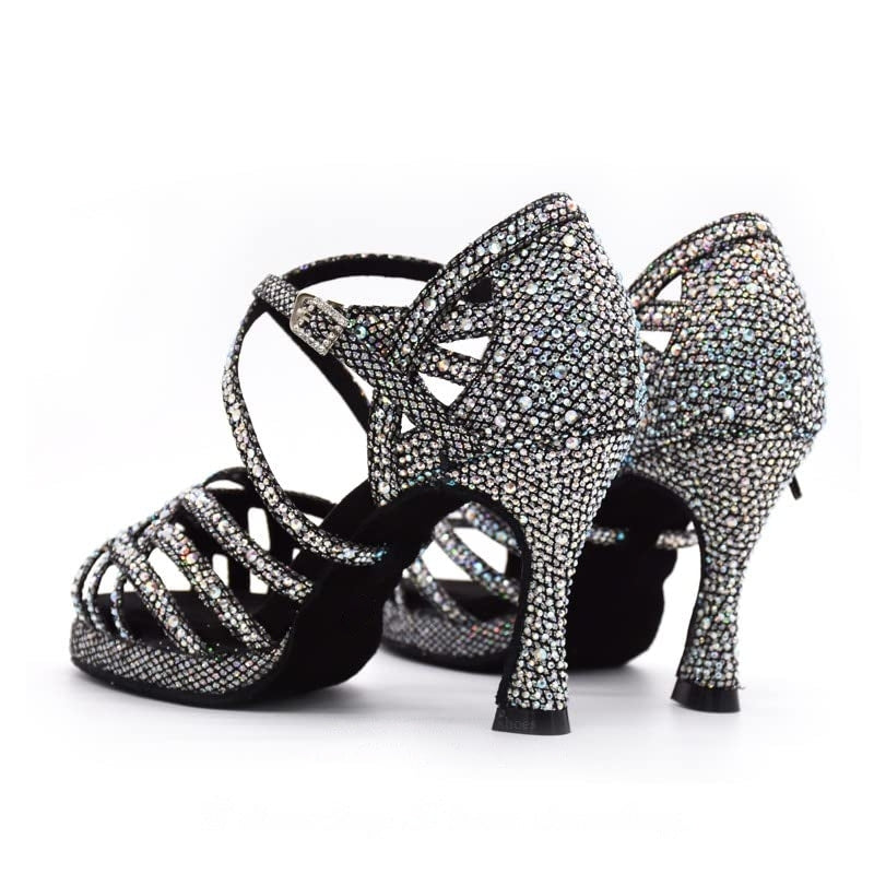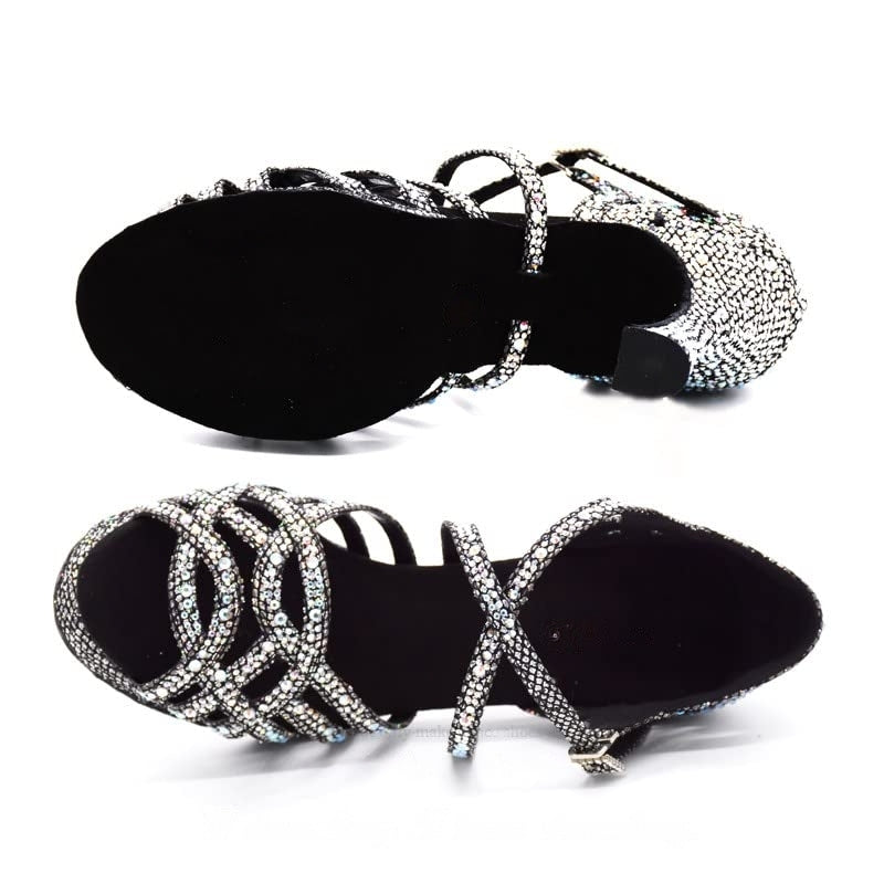 Damen Ballsaal Tanzschuhe Latein Schuhe mit Glitzersteinen in Schwarz