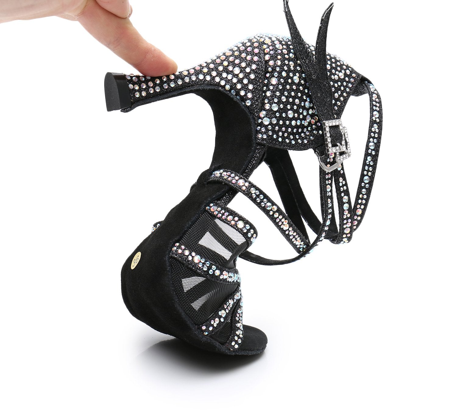 Damen Tanzschuhe mit Glitzersteinen, individueller Absatz, lateinamerikanische Tanzschuhe, Salsa-Schuhe, Gesellschaftstanzschuhe