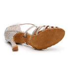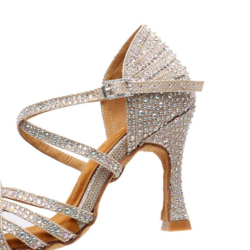 Graue Tanzschuhe mit Strasssteinen und Glitzersteinen für Damen