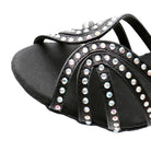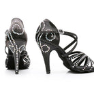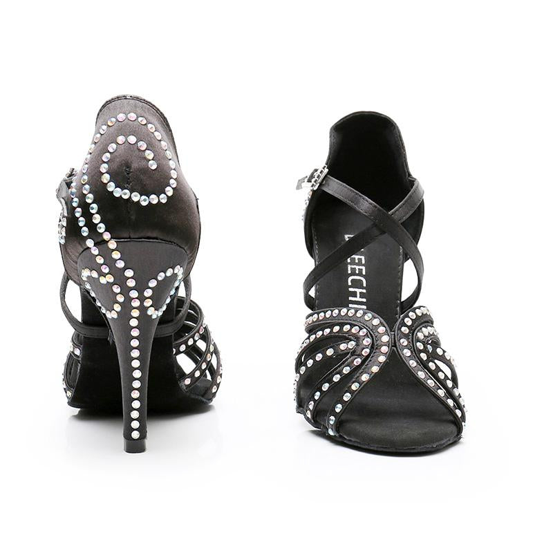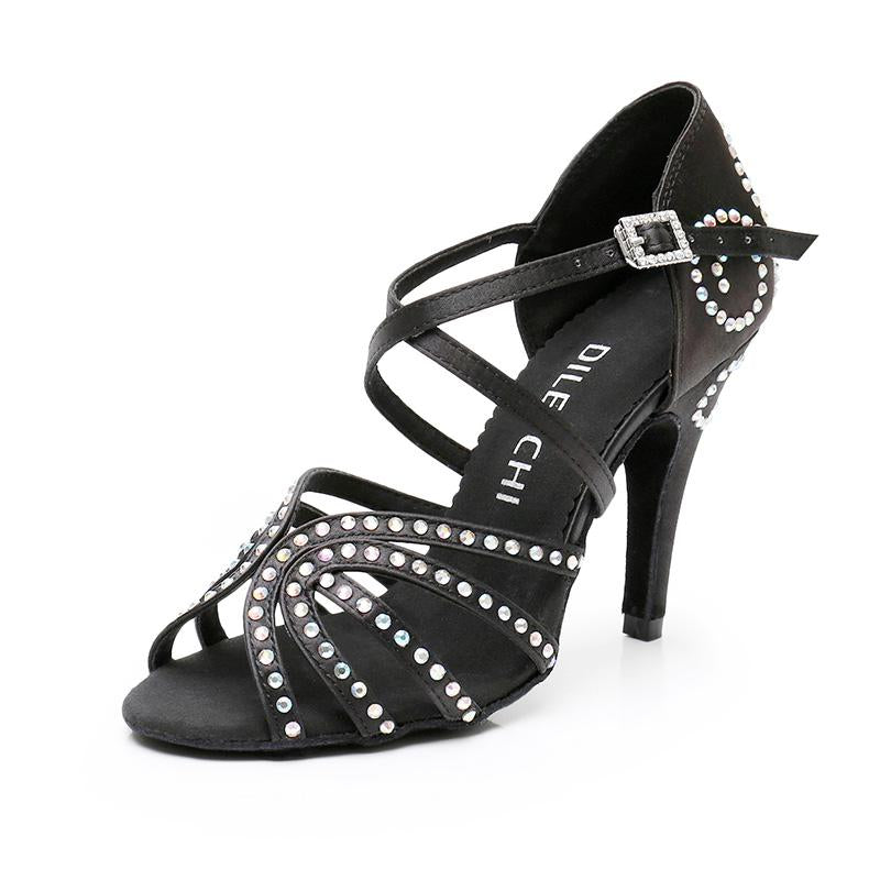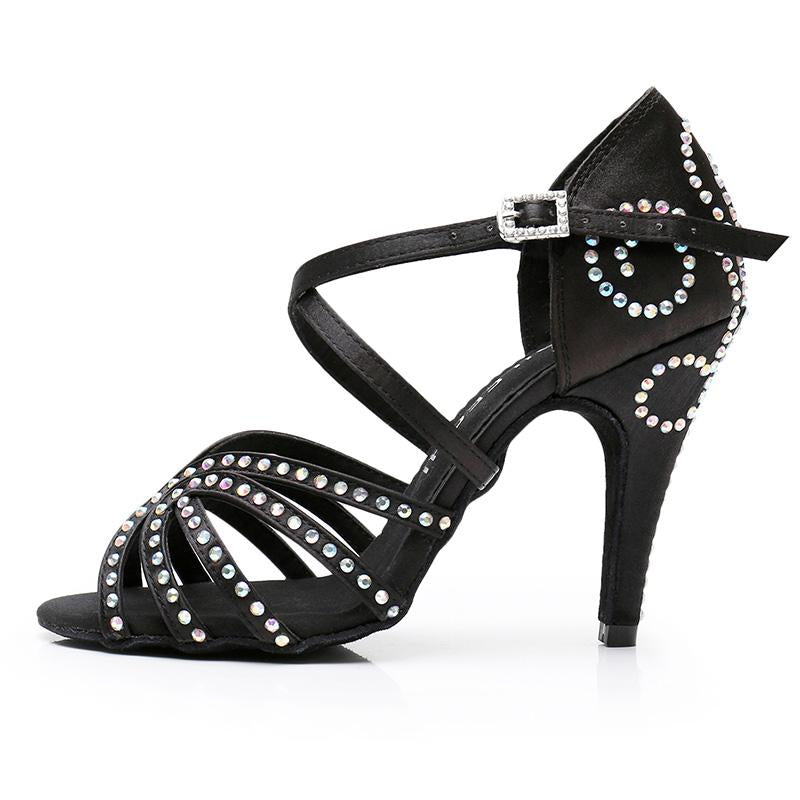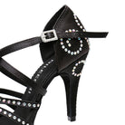 Damen Schwarz Maßgefertigter Absatz Satin Strass Riemchen Ballsaal Latein Tanzschuhe
