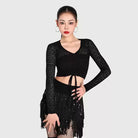 Yes Damen Schwarz Pailletten Quaste Latein Tanzrock Training Performance Röcke Tanzbekleidung