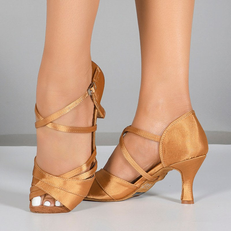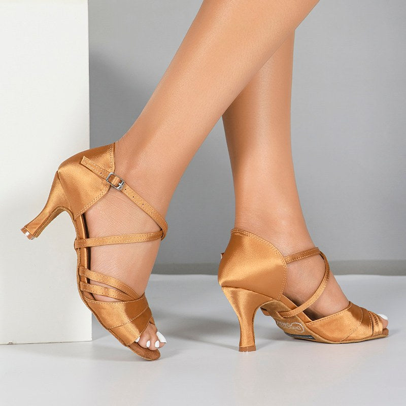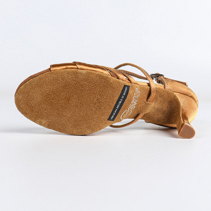 HW Women's Bronze Customized Heel Satin Strappy Dance Shoes Latin Dance Shoes