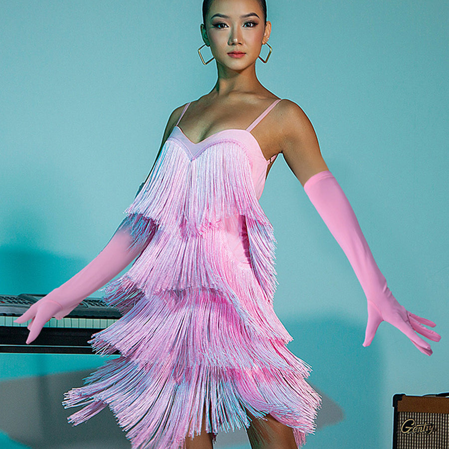 Z Women's Milk Silk Fabric Tassel Dance Dress Dance Wear Training Performance Dress