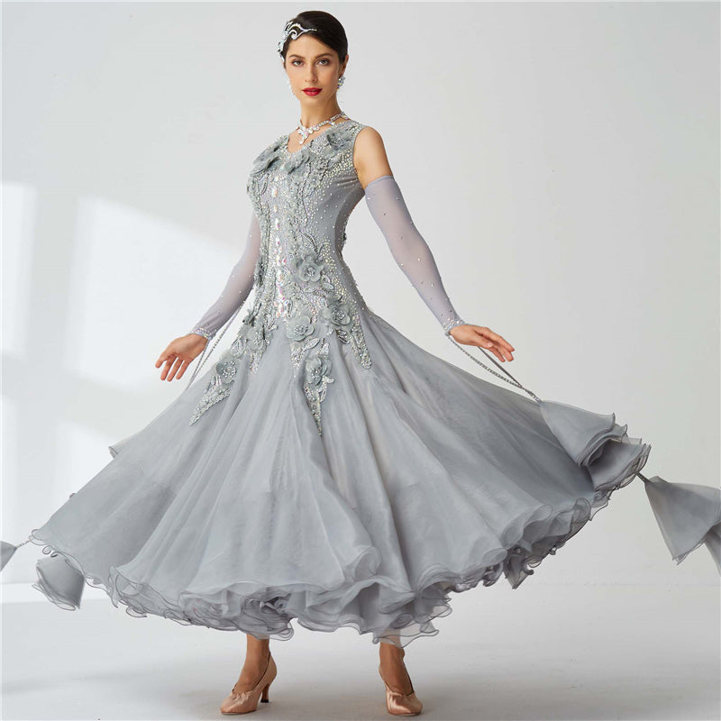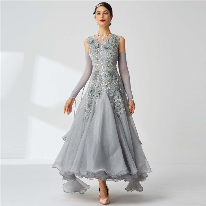 YUN Customisable-Women's Sleeveless Applique with Diamonds Waltz Modern Ballroom Dance Dress Competition Dresses