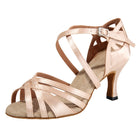 HW Women's Apricot Customized Heel Satin Strappy Dance Shoes Latin Dance Shoes