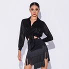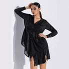 HC Women's Long Sleeve V Neck Latin Dance Tops Dance Wear Training Performance Tops