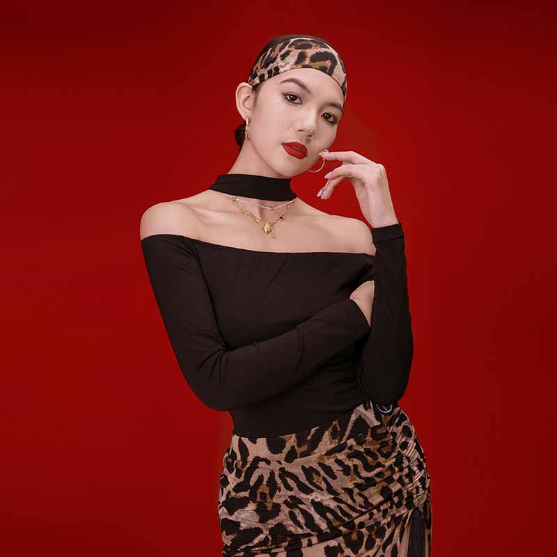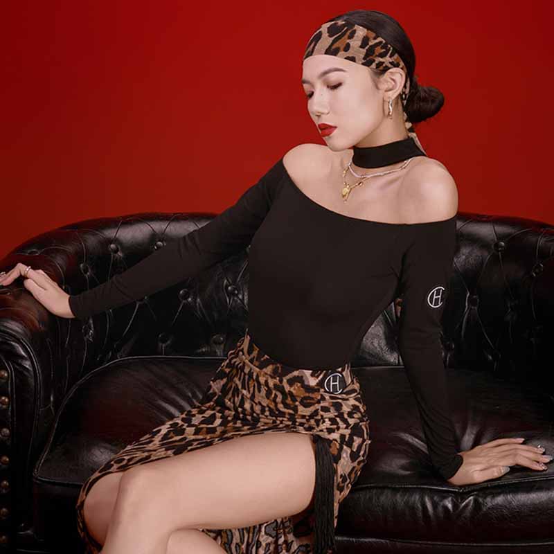 HC Women's Long Sleeve Off Shoulder Latin Dance Tops Dance Wear Training Performance Tops