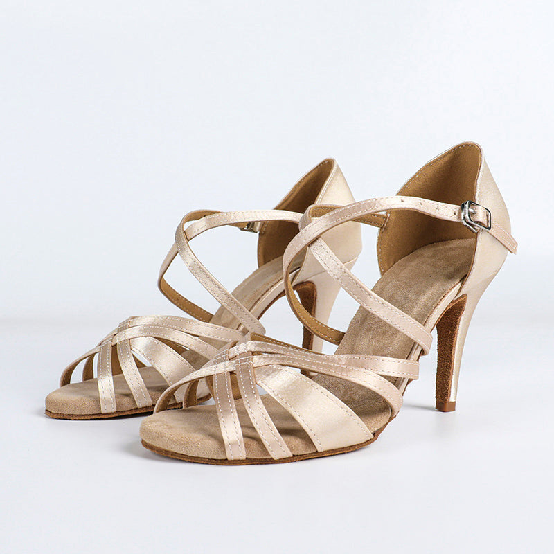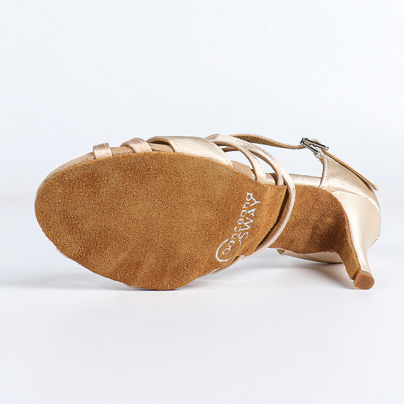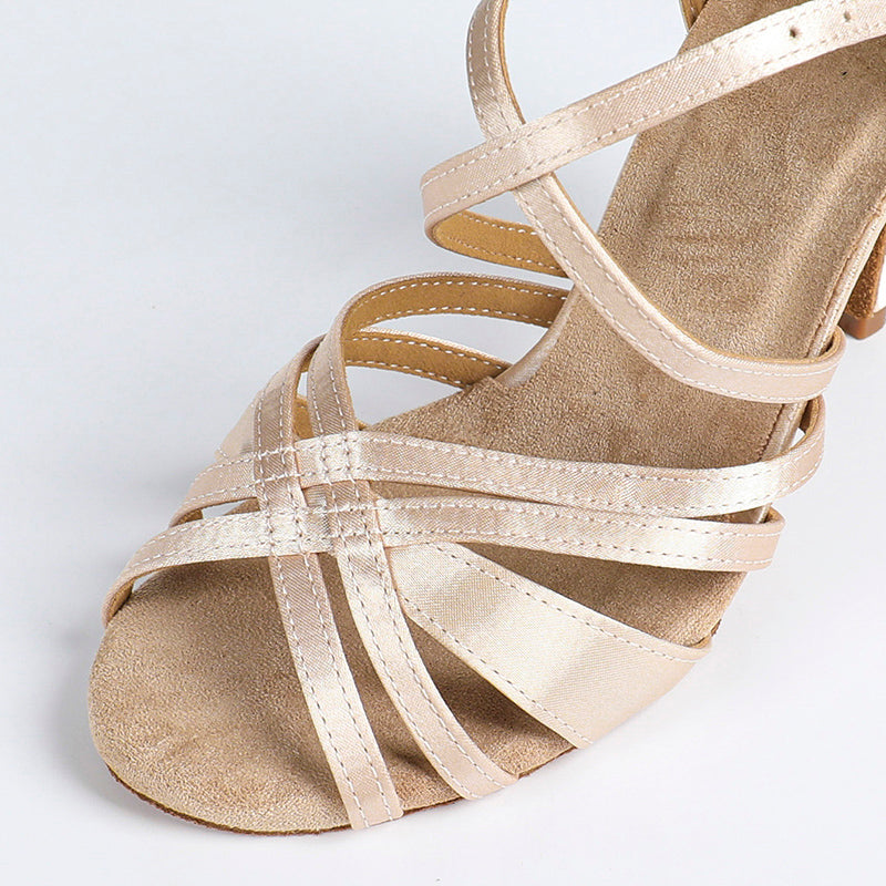 DS Women's Champagne Satin Customized Heel Ballroom Dance Shoes Latin Shoes