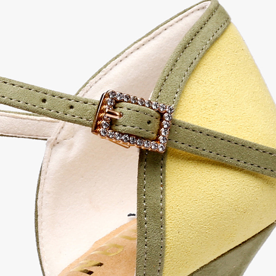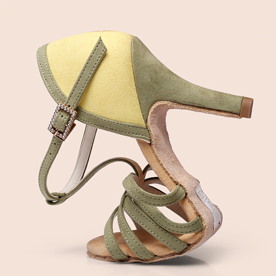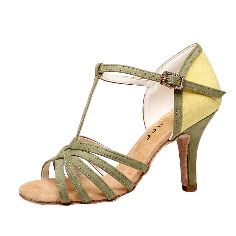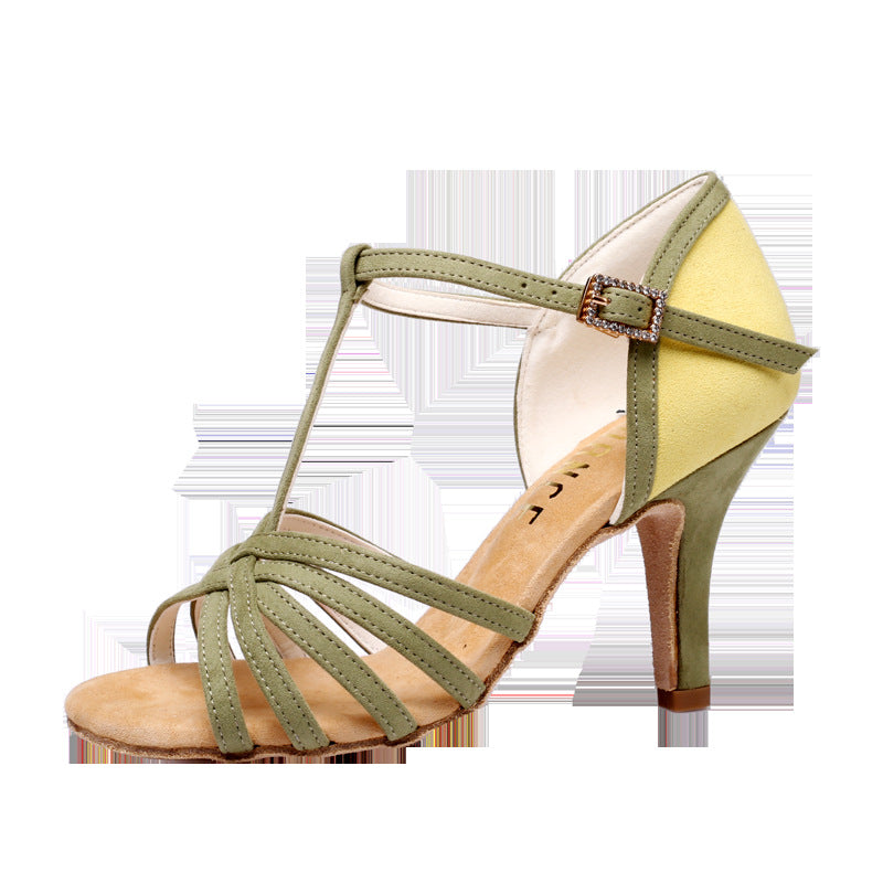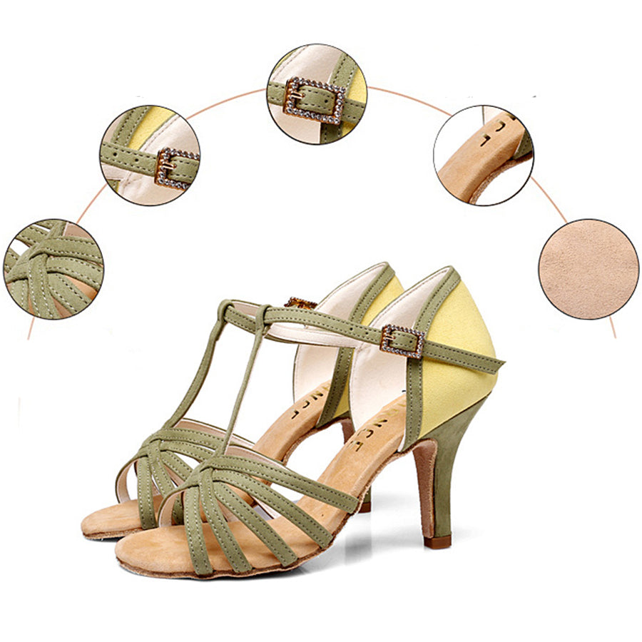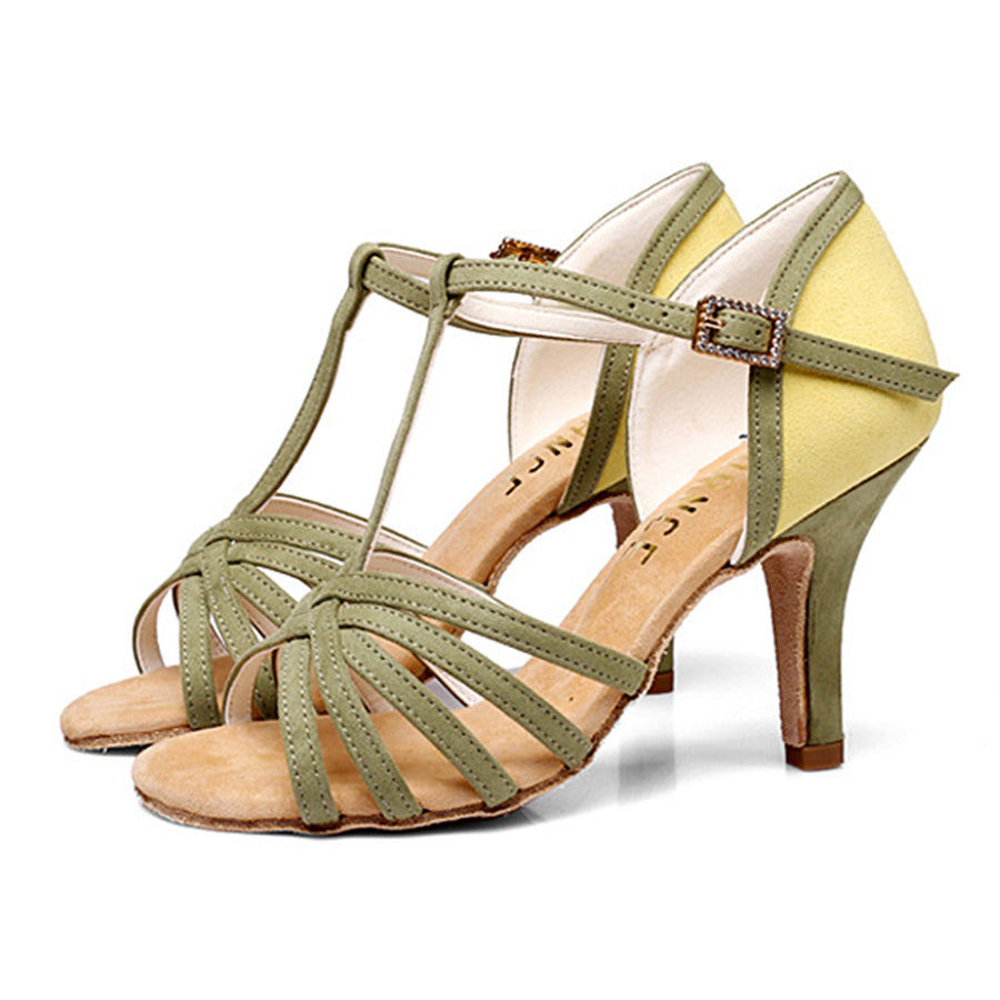 Women's Green Leatherette Customized Heel T-Strap Latin Dance Shoes Ballroom Dance Shoes