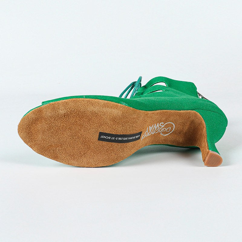 Women's Green Suede Sole Customized Heel Dance Boots Jazz Salsa Dance Shoes