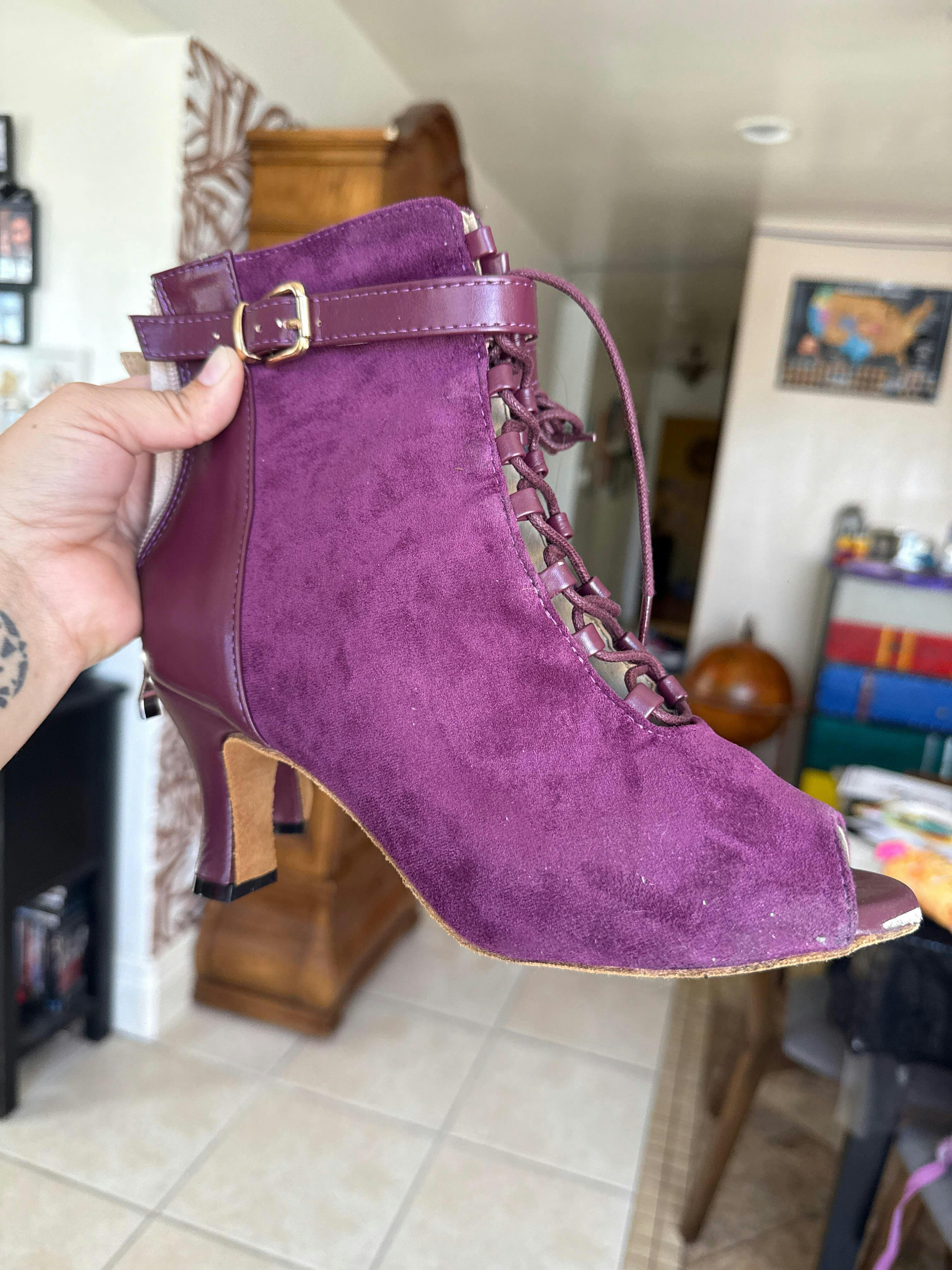 Women's Purple Suede Customized Heel Dance Boots Salsa Dance Shoes