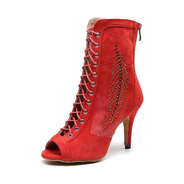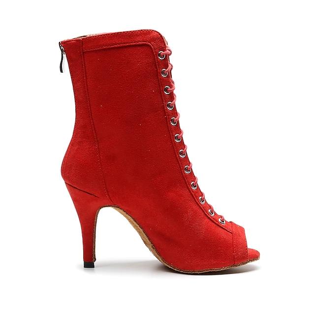 Women's Suede Red Customized Heels Dance Boots Jazz Salsa Dance Shoes
