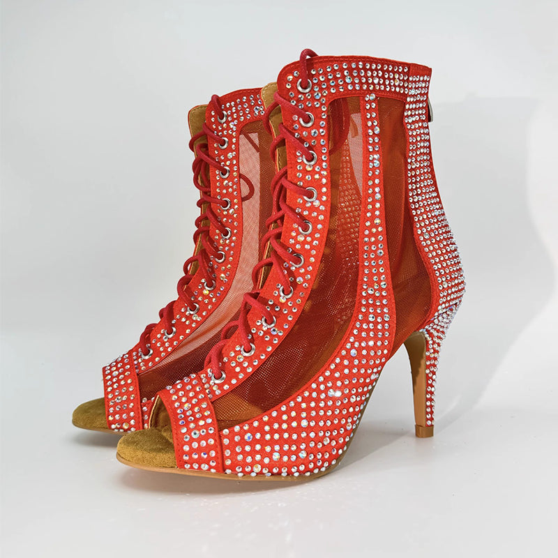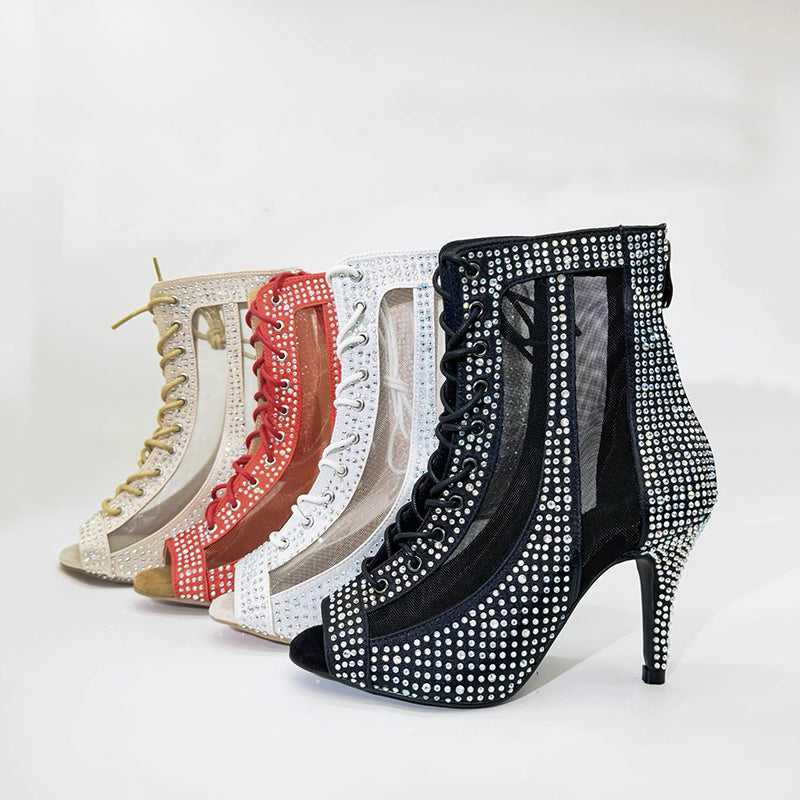 Women's Customized Heel Rhinestone Satin Customized Heels Dance Boots Jazz Salsa Dancing Shoes