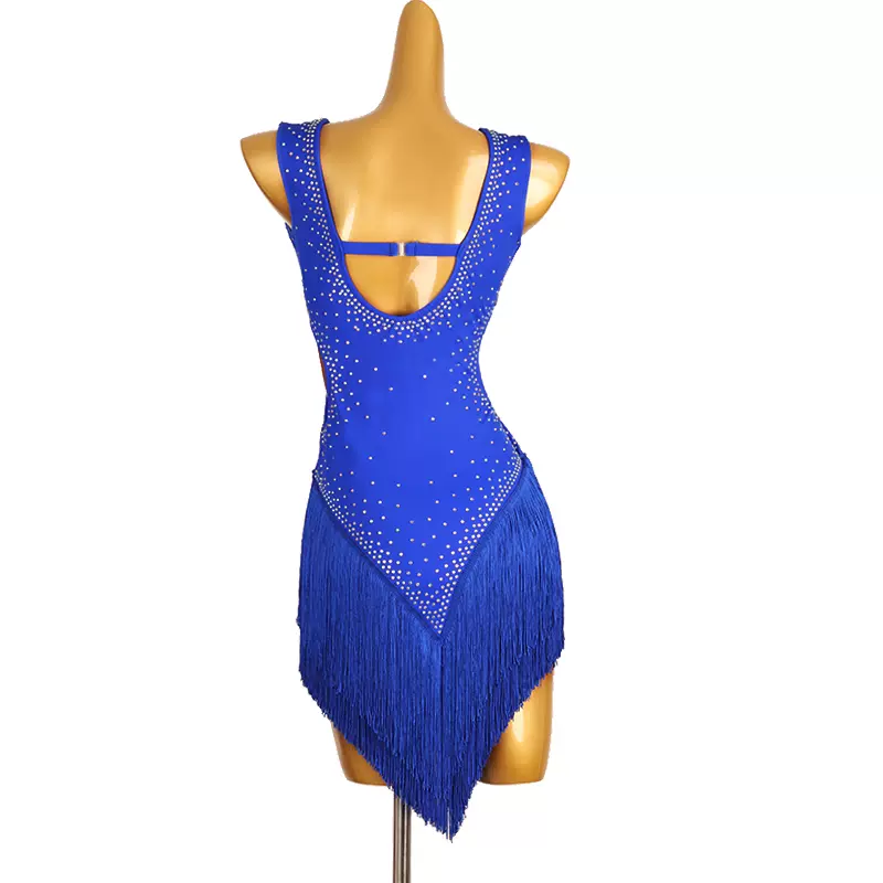 Customisable-Women's Blue V-Neck Tassel DanceWear Dance Dress