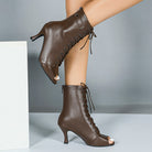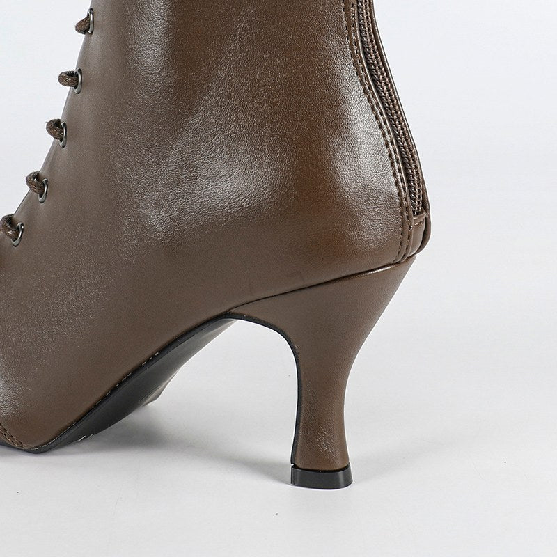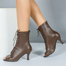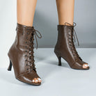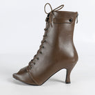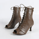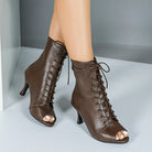 DS Women's Coffe Rubber Sole Leatherette Customized Heel Dance Boots Salsa