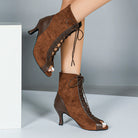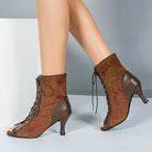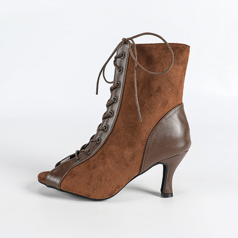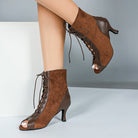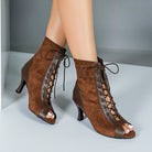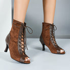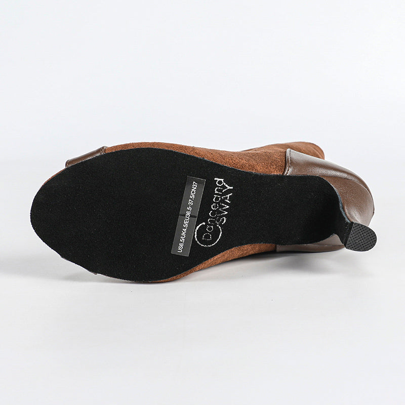 DS Women's Coffe Suede Customized Heel Dance Boots Jazz Salsa Dance Shoes
