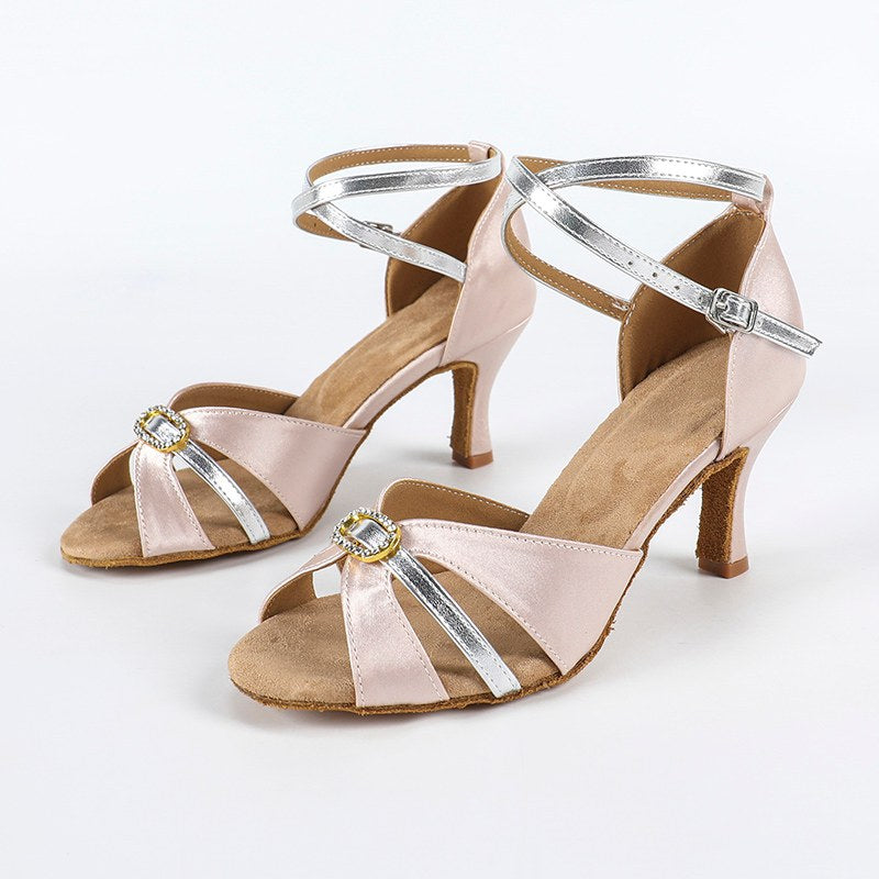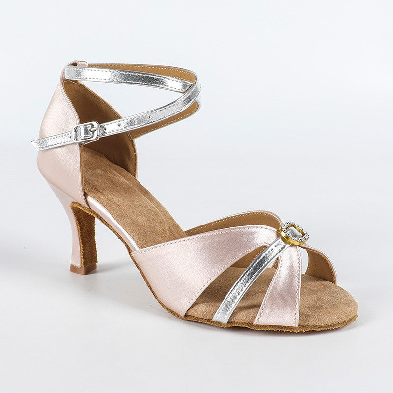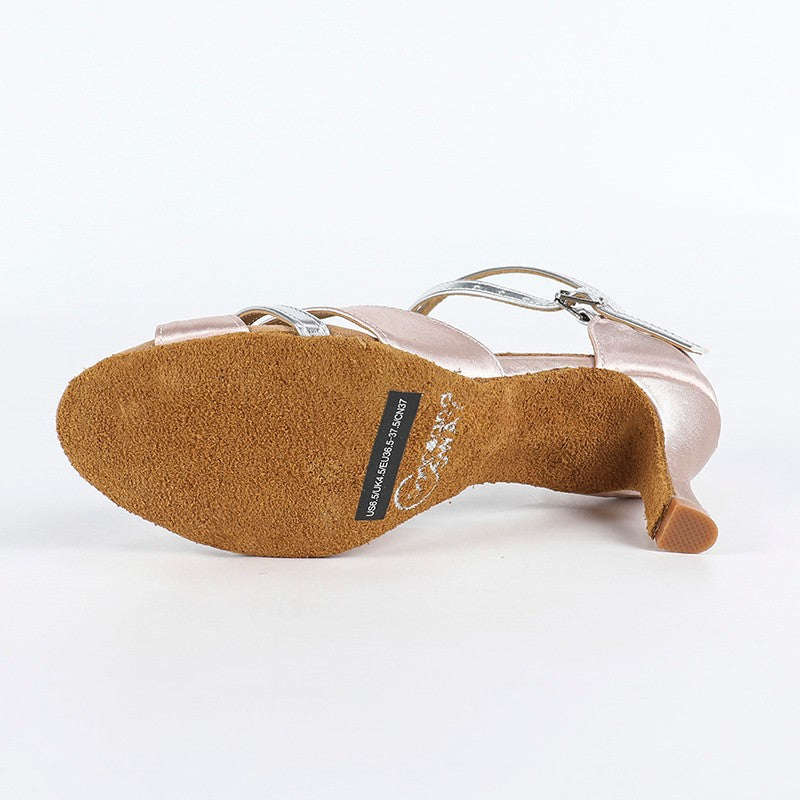 DS Women's Pink Satin Customized Heel Latin Dance Shoes Ballroom Dance Shoes