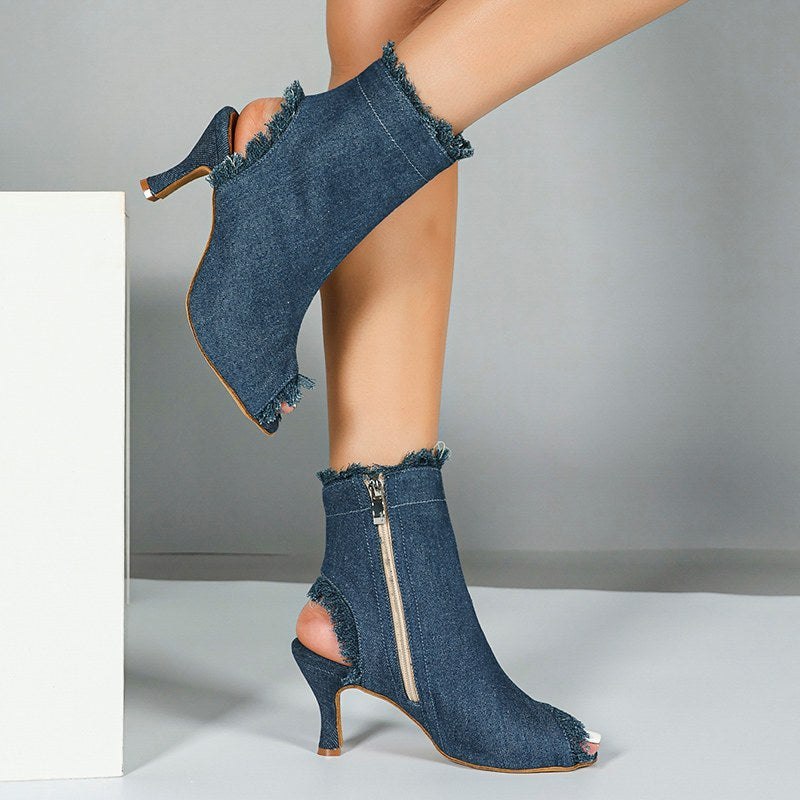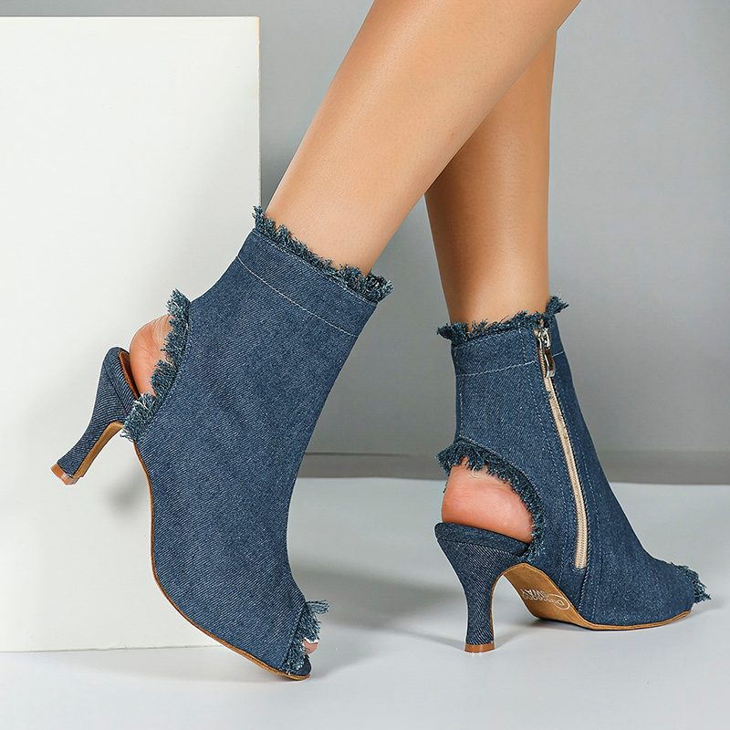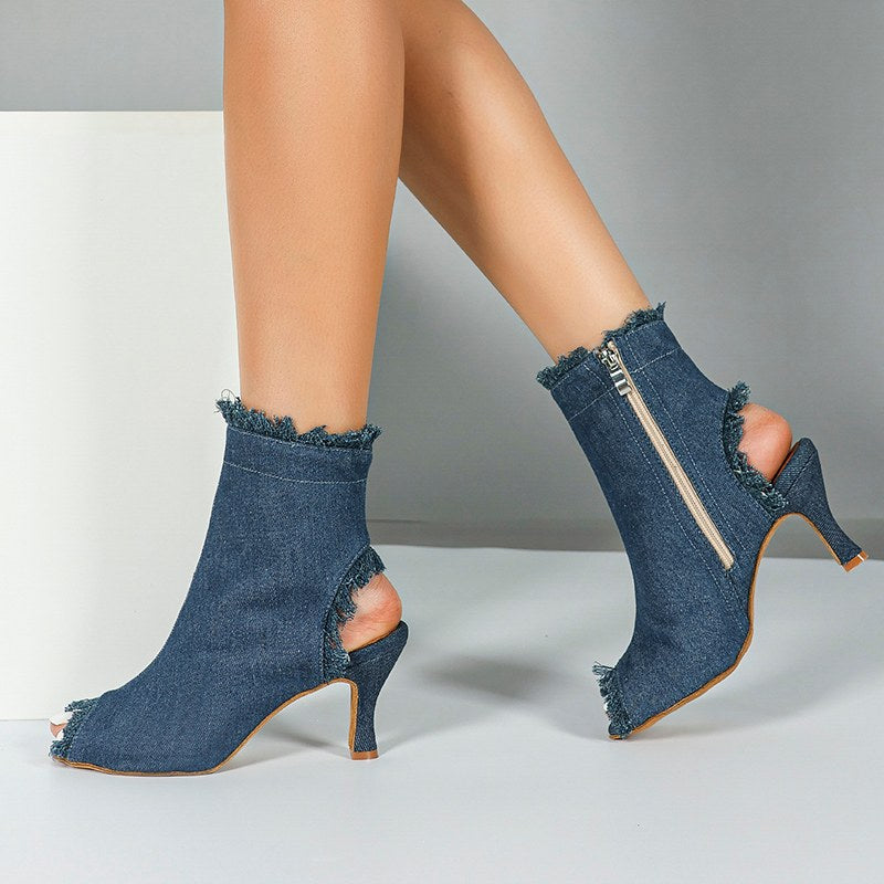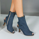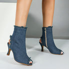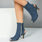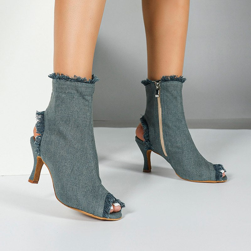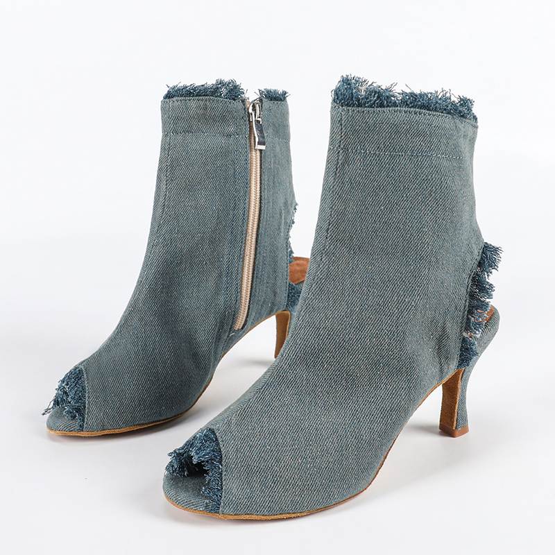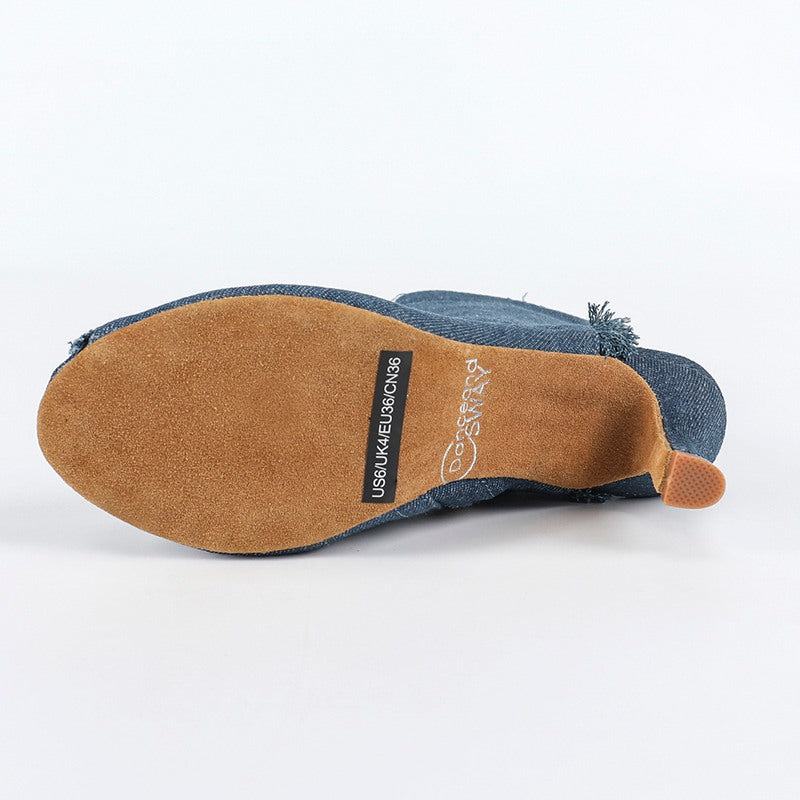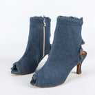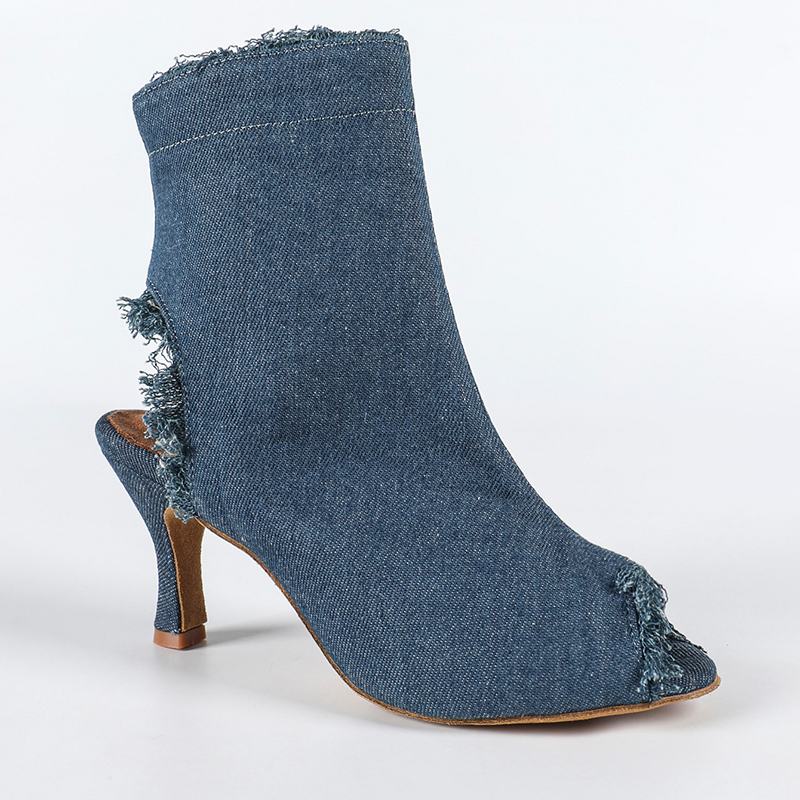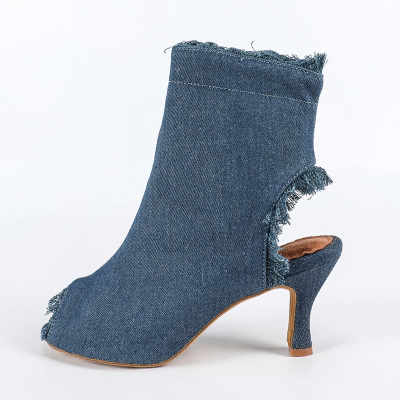 DS Women's Blue Denim Customized Heel Dance Boots Salsa Jazz Dance Shoes