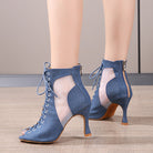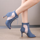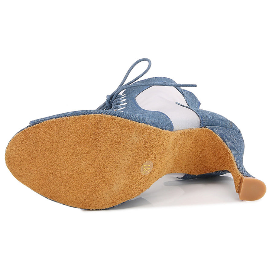 Women's Blue Customized Heel Denim Jazz Shoes Dance Heels Boots