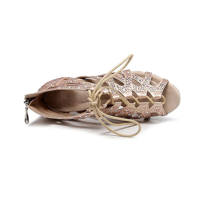 Women's Satin Rhinestone Customized Heel Dance Boots Jazz Salsa Dance Shoes