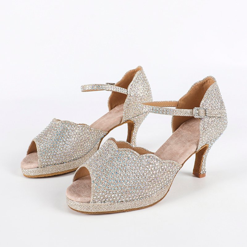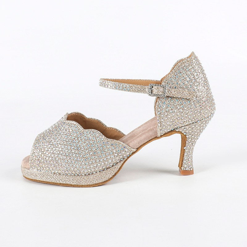DS Women's Sparkling Glitter Customized Heel Salsa Latin Dance Shoes