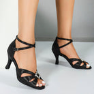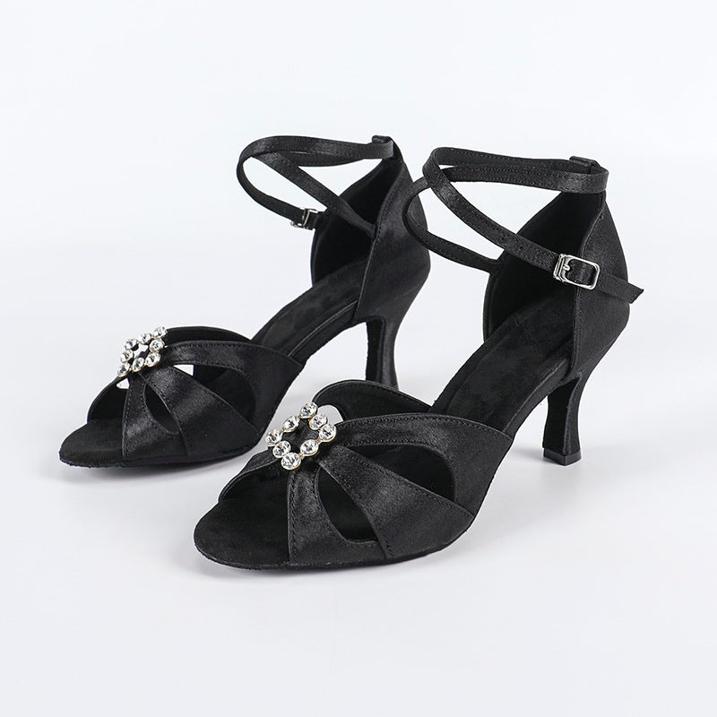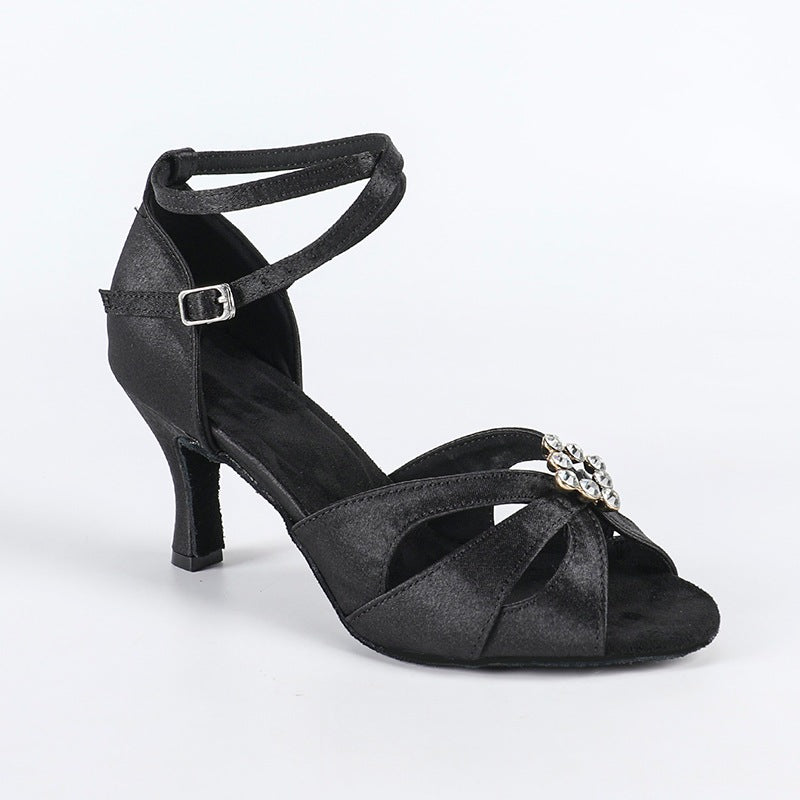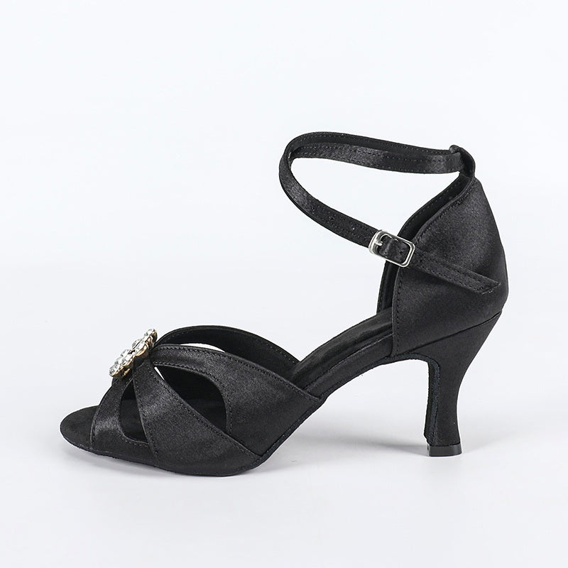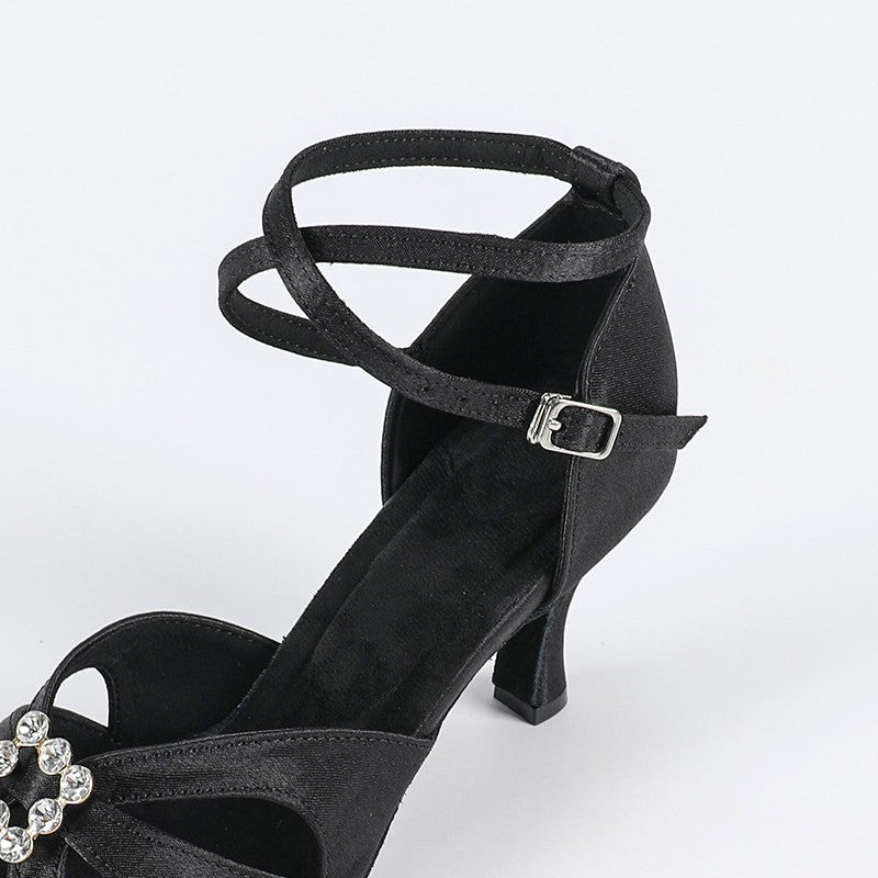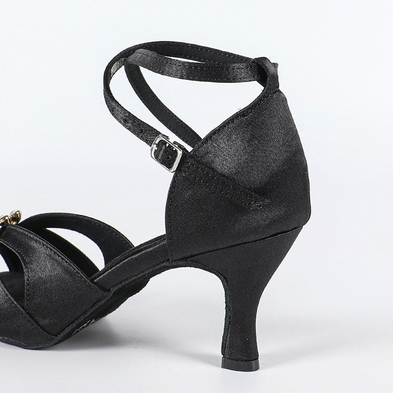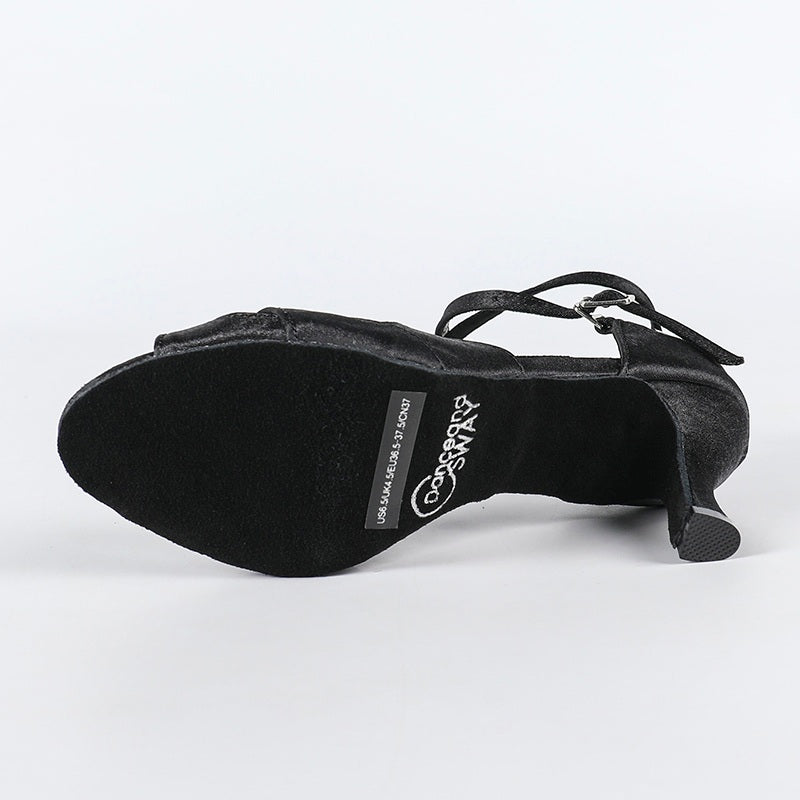 DS Women's Black Satin Customized Heel Latin Dance Shoes Ballroom Dance Shoes