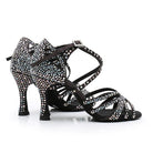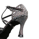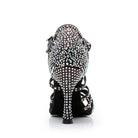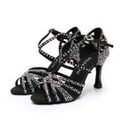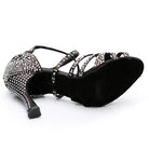 Women's Black Customized Heel Strappy Dance Shoes With Crystals