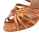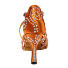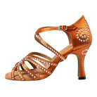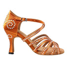 Women's Bronze Customized Heel Satin Rhinestones Strappy Latin Dance Shoes