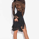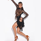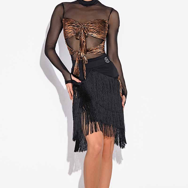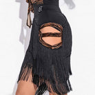 HC Women's Black Tassel Latin Dance Skirt Dance Wear Training Performance Skirt