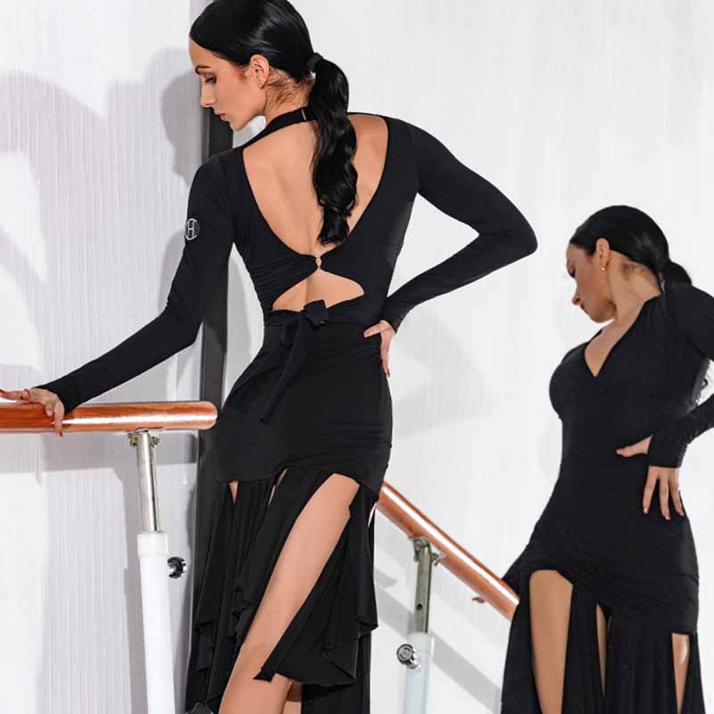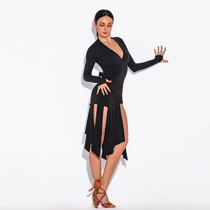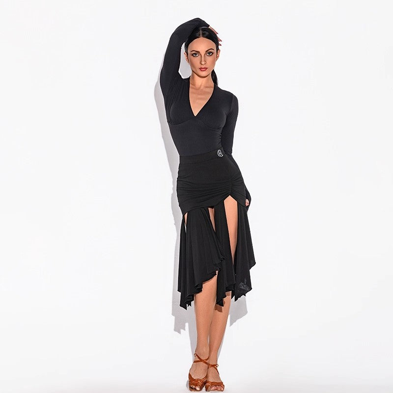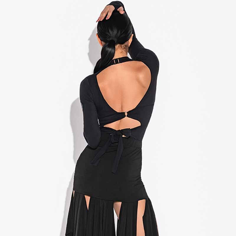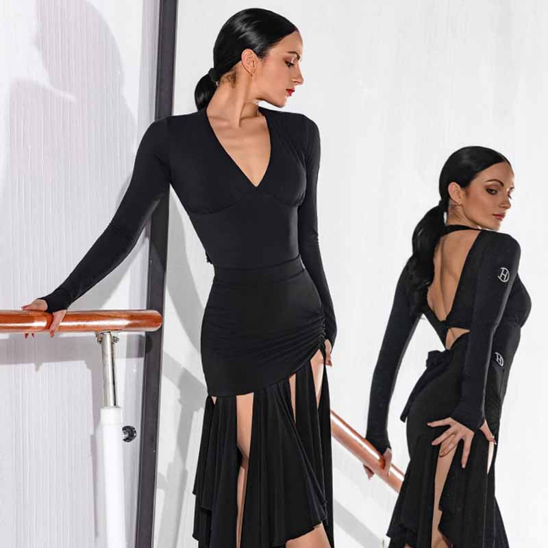 HC Women's Black V Neck Latin Dance Tops Dance Wear Training Performance Tops