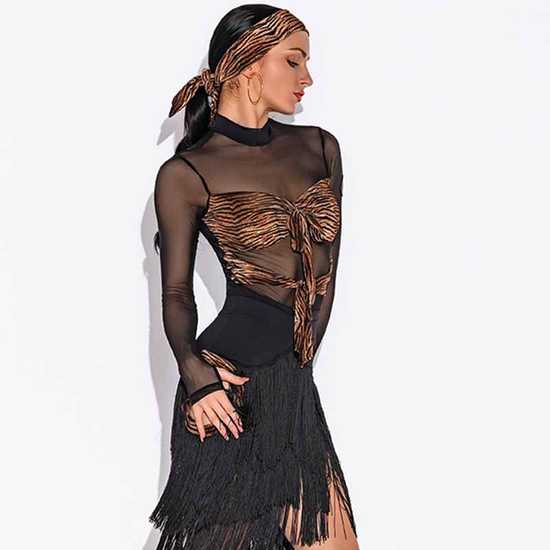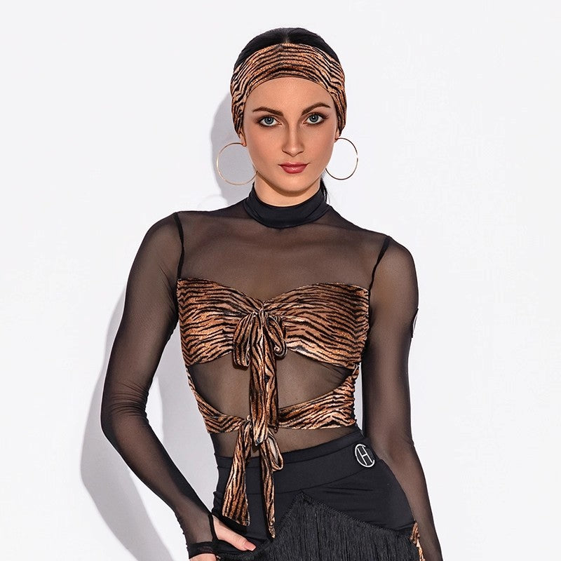 HC Women's Leopard Velvet Latin Dance Tops Dance Wear Training Performance Tops