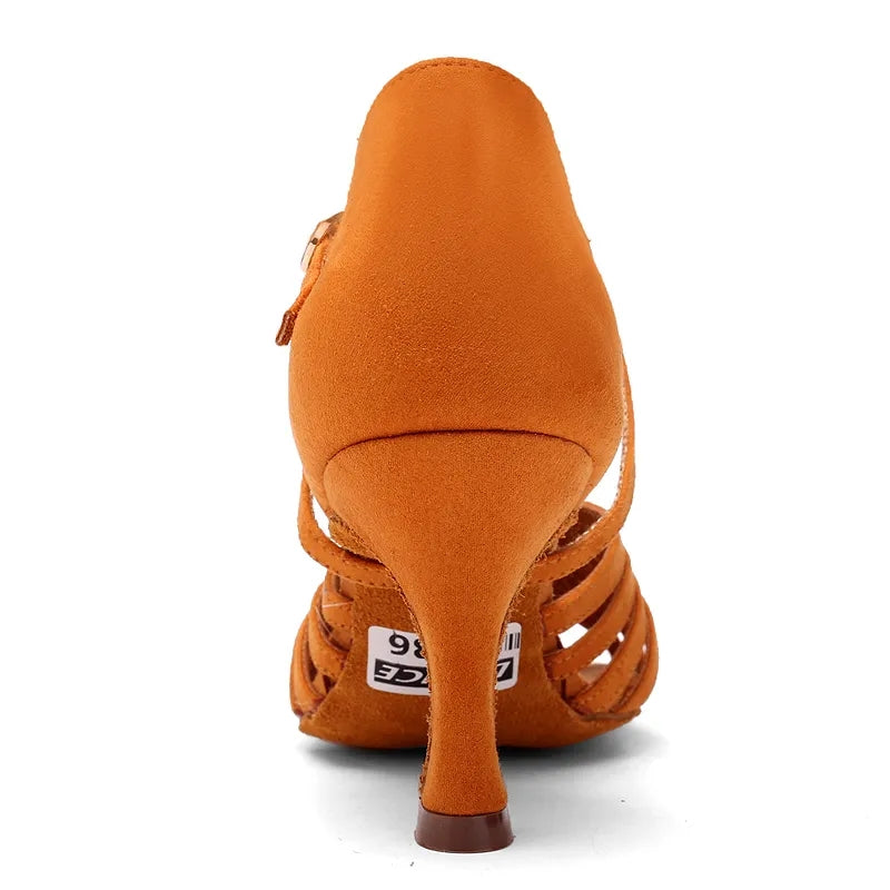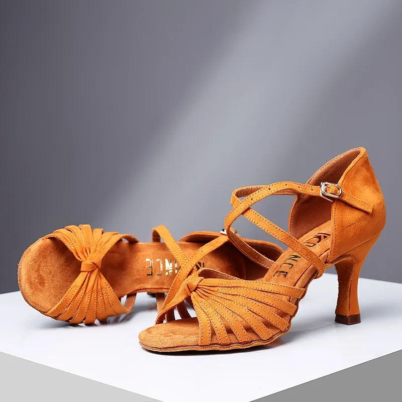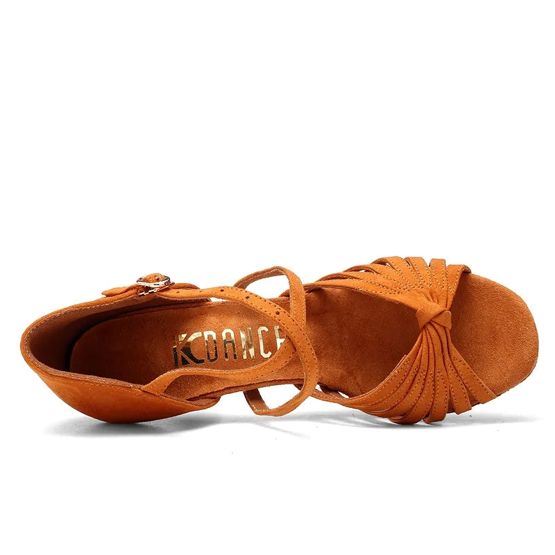 KCDANCE Women's Suede Brown 6.5cm/7.5cm Ankle Strap Ballroom Latin Dance Shoes