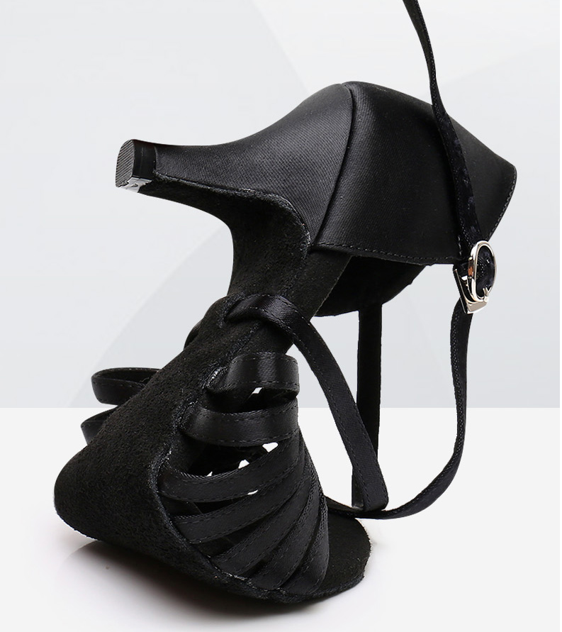 Women's Black Customized Heel Strappy Knot Dance Shoes Ballroom Latin Dance Shoes