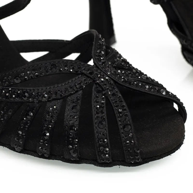 Women's Black Satin & Rhinestones Sandal Customized Heel Dance Shoes