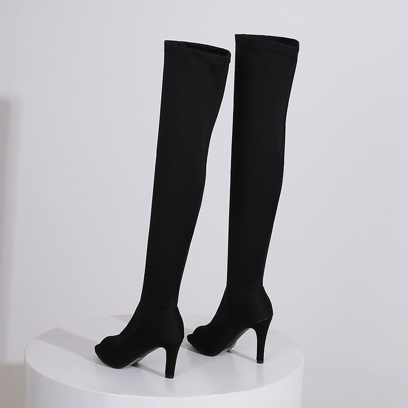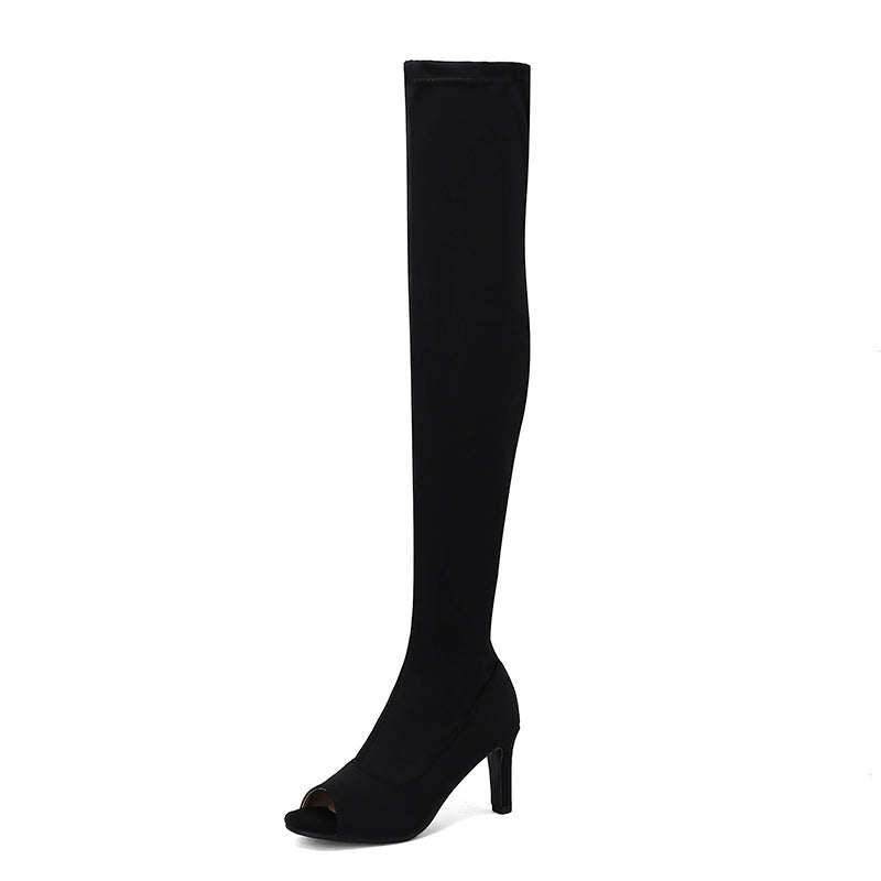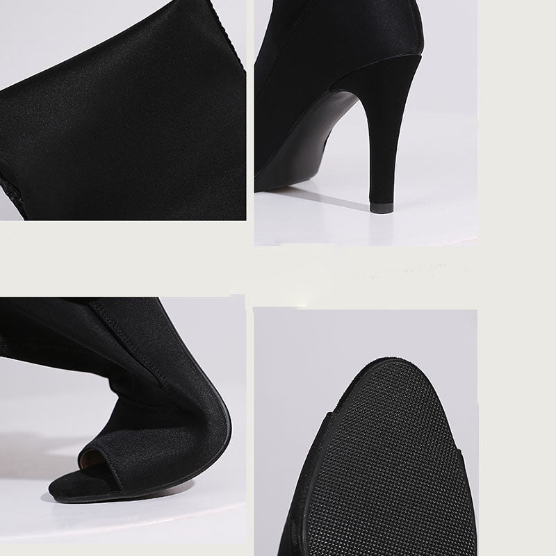 Women's 7cm/9cm Heel Stretch fabric Jazz Shoes Rubber Sole Open Toe Dance Heels Boot