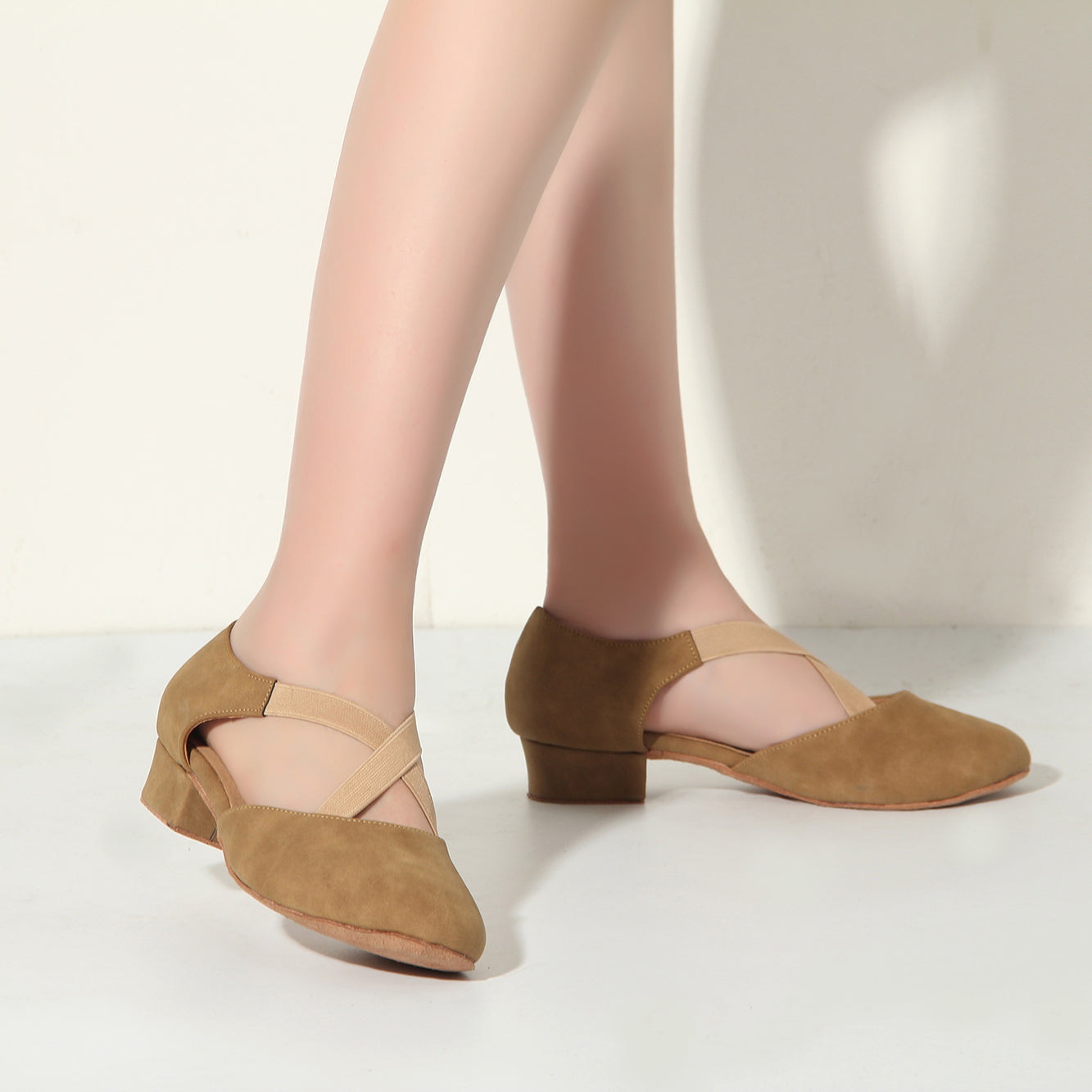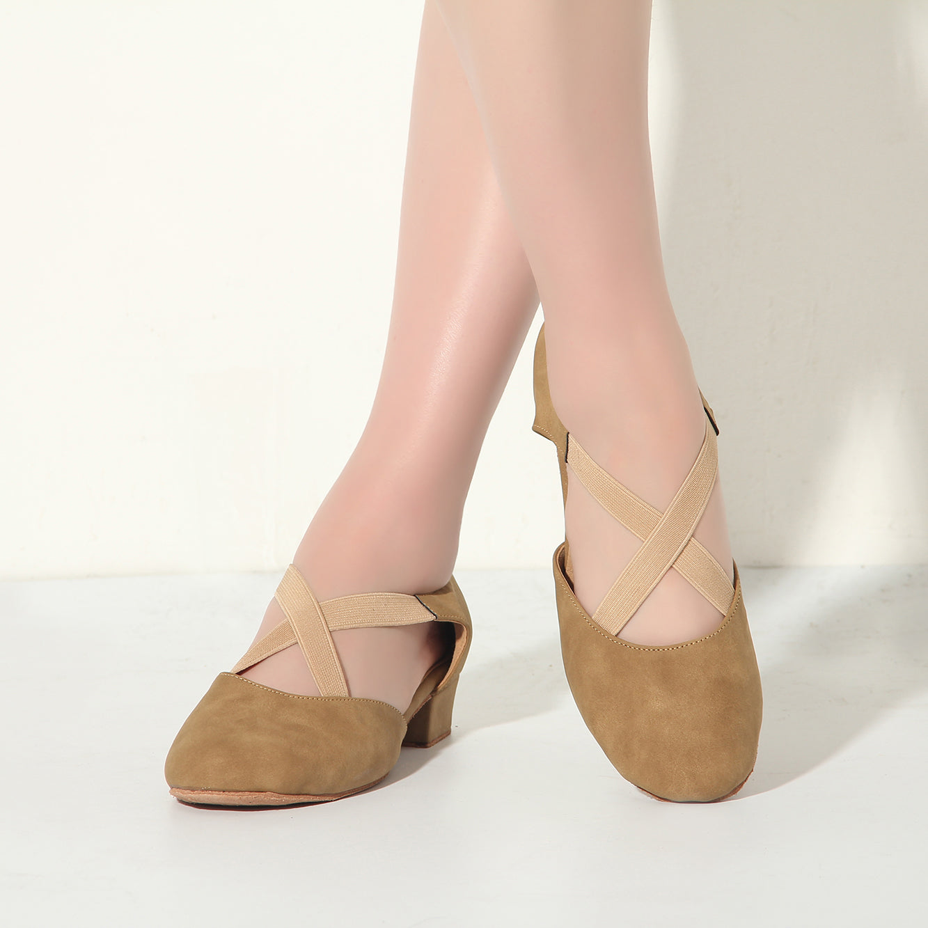 Women's Apricot Suede 3.5cm Heels Ballroom Swing Dance Shoes