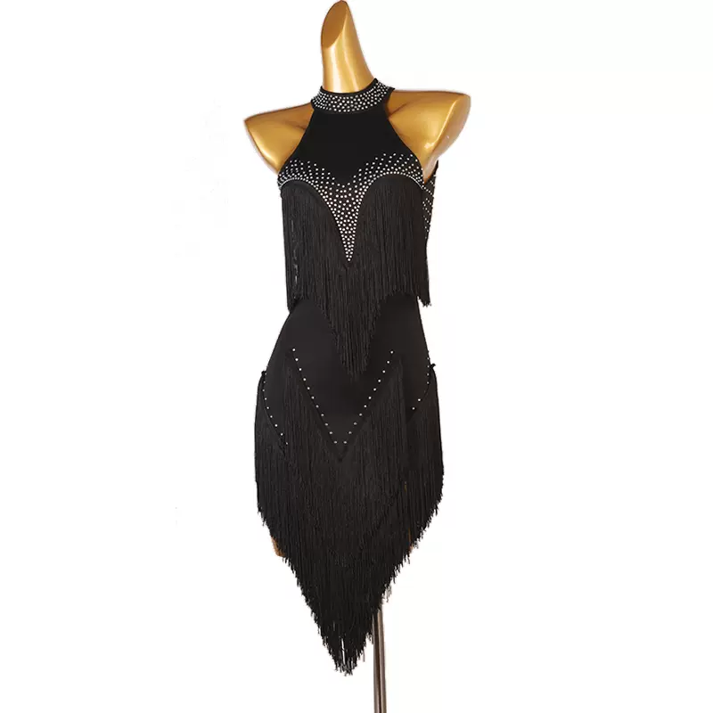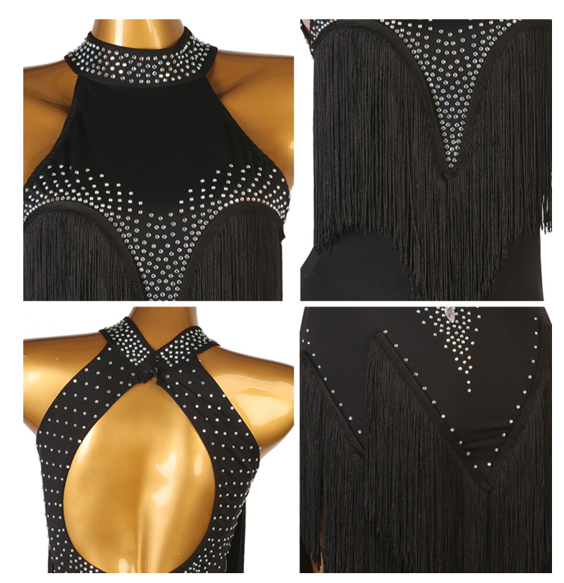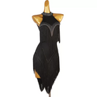 Customisable-Women's Black High Neck Tassel DanceWear Dance Dress