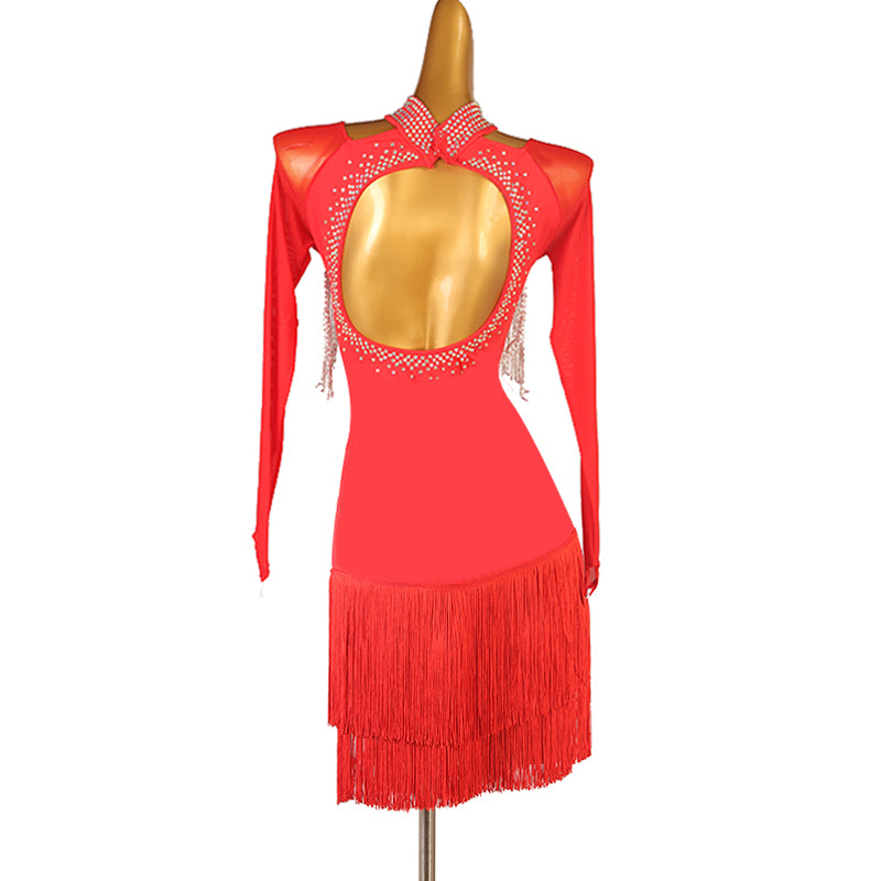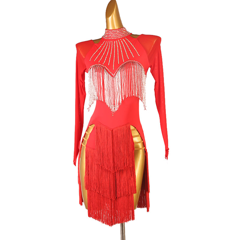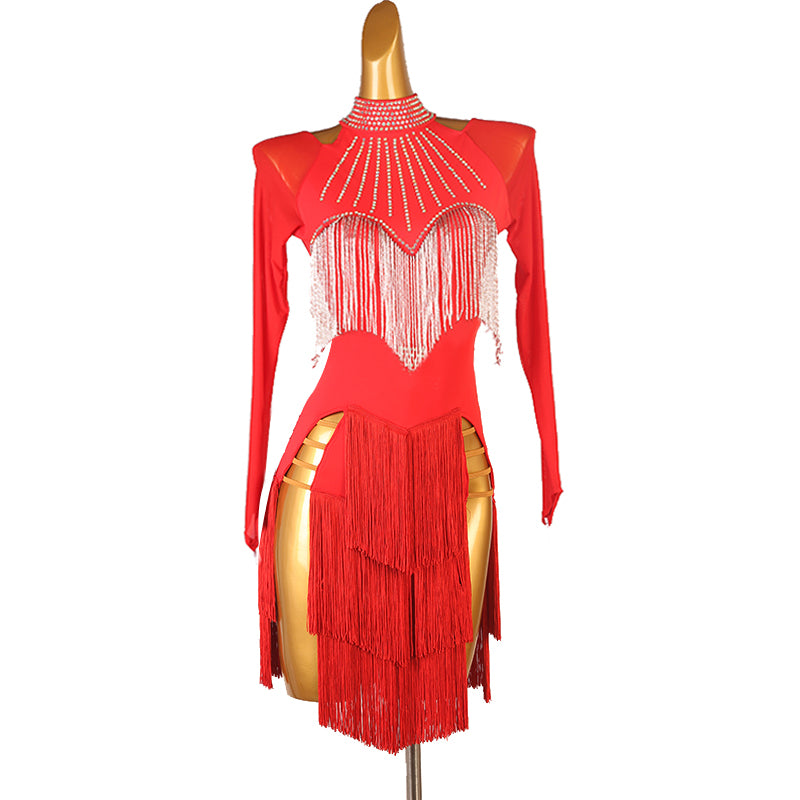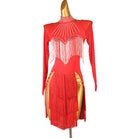 Customisable-Women's Long Sleeve Tassel Dance Wear Dance Dress Performance Wear
