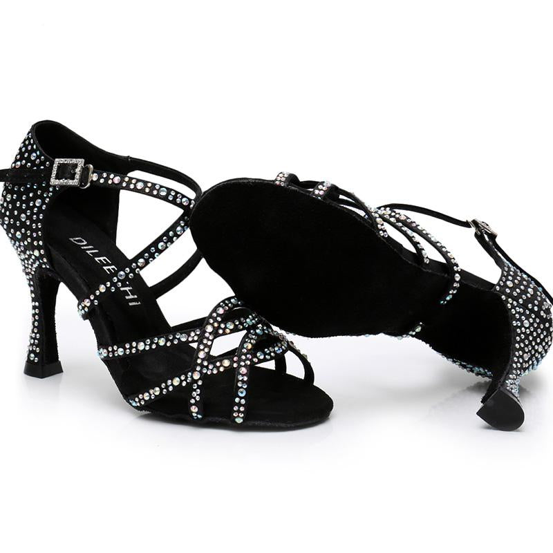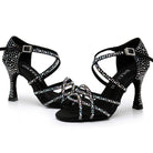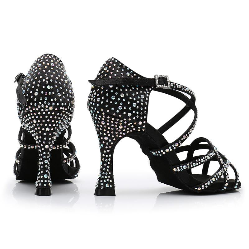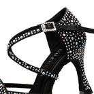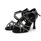 Women's Black Satin Rhinestone Customized Heels Ballroom Latin Dance Shoes