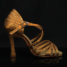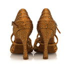 Women's Brown 9cm Strappy Satin Rhinestones Sandal Latin Dance Shoes