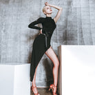 Women's Milk Silk Fabric Hollow-out Latin Dance Dress Dance Wear Training Performance Dress
