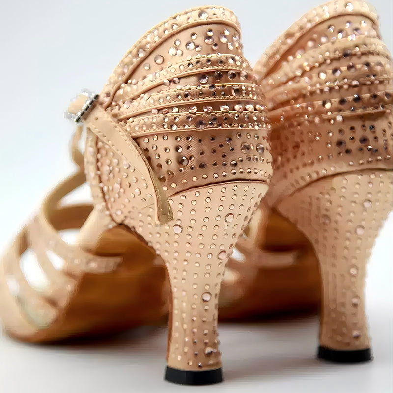 DS Women's Satin Rhinestone Customized Heel Latin Shoes Salsa Shoes Ballroom Dance Shoes