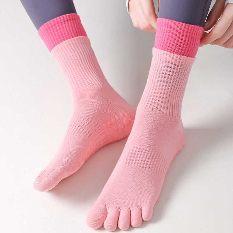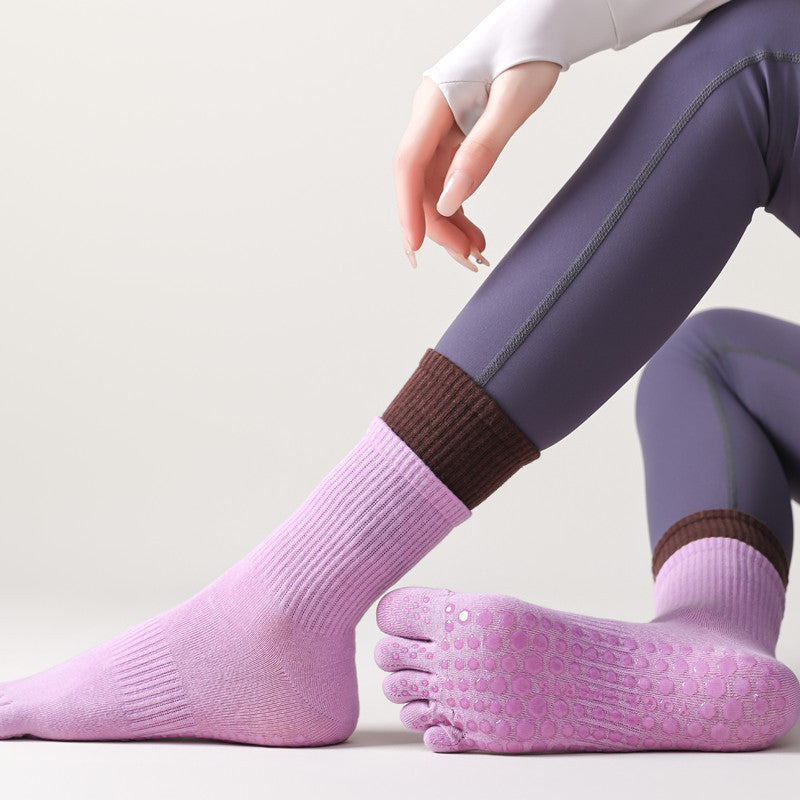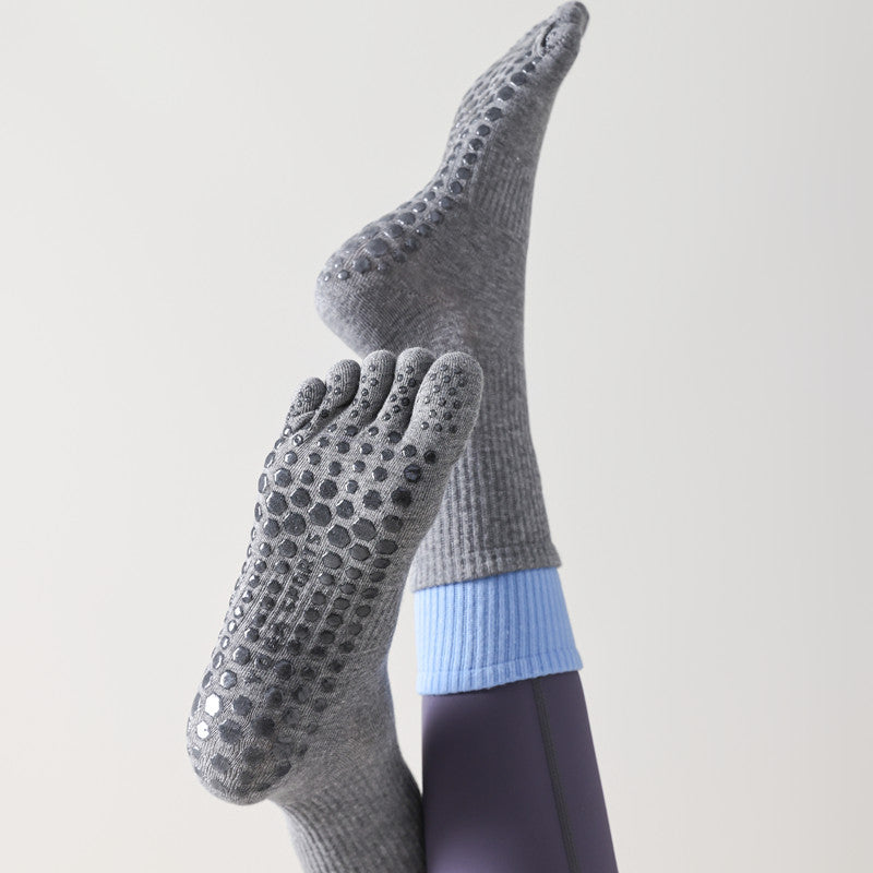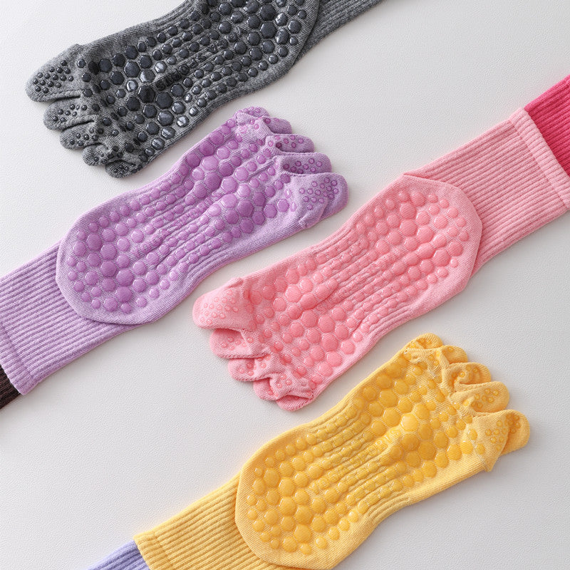 Five-Toe Split Yoga Pilates Knit Cotton Grip Short Socks